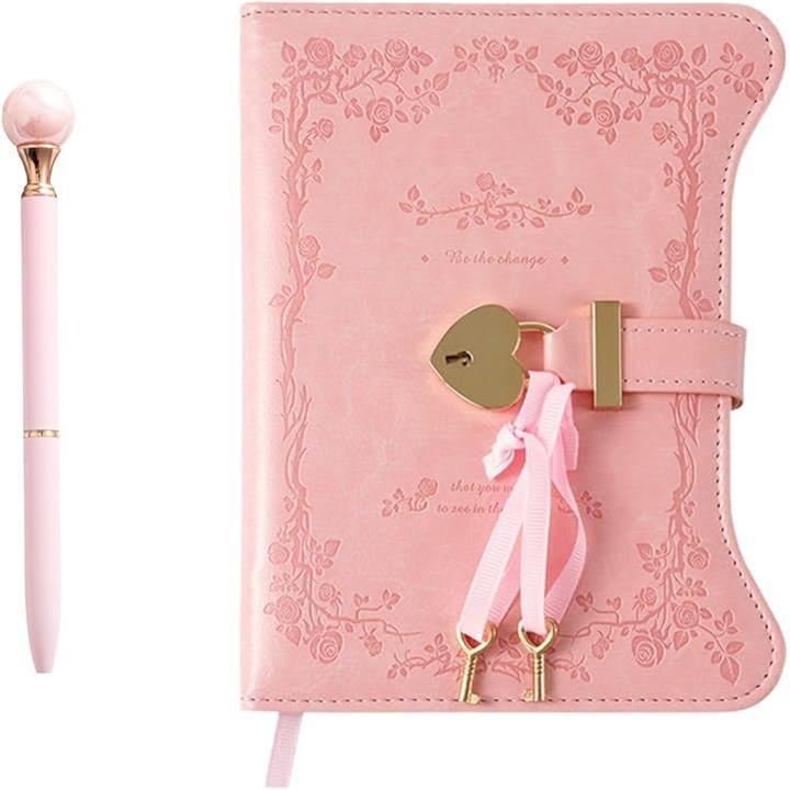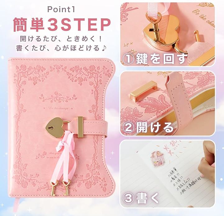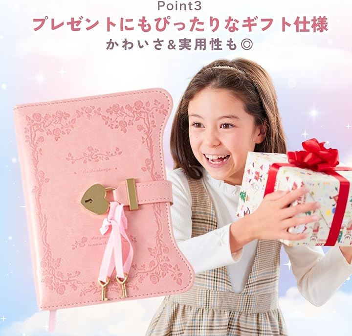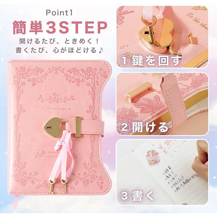 鍵付きノート ハート 日記帳 交換日記 入学祝い b6 詰め替え可能 横罫 子供