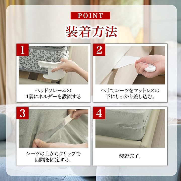 ベッドシーツクリップ ヘラセット ずれ防止 シーツ固定 ベッドメイキング シーツ交換