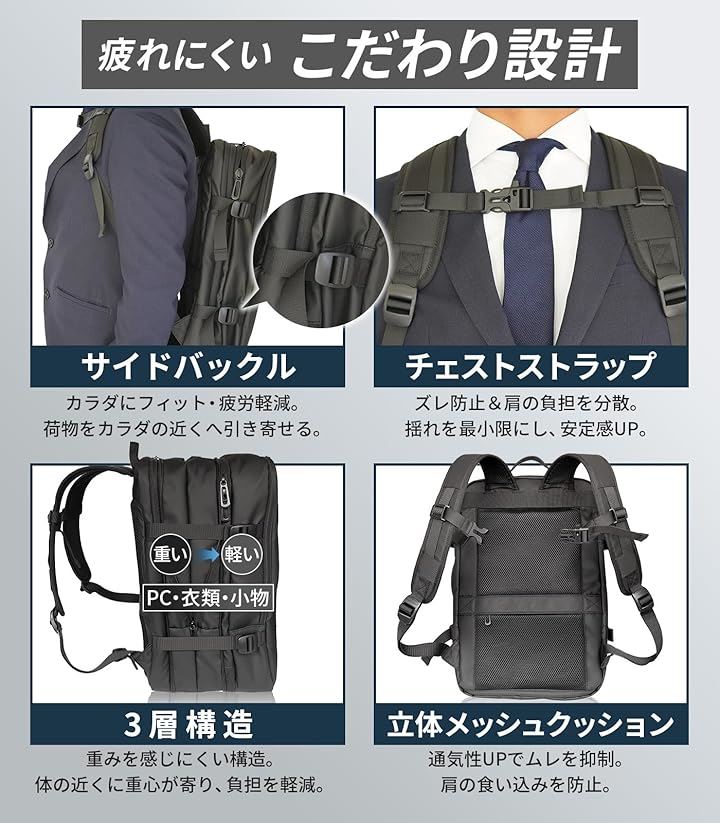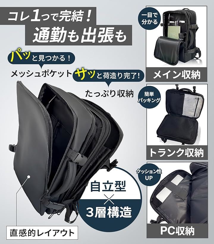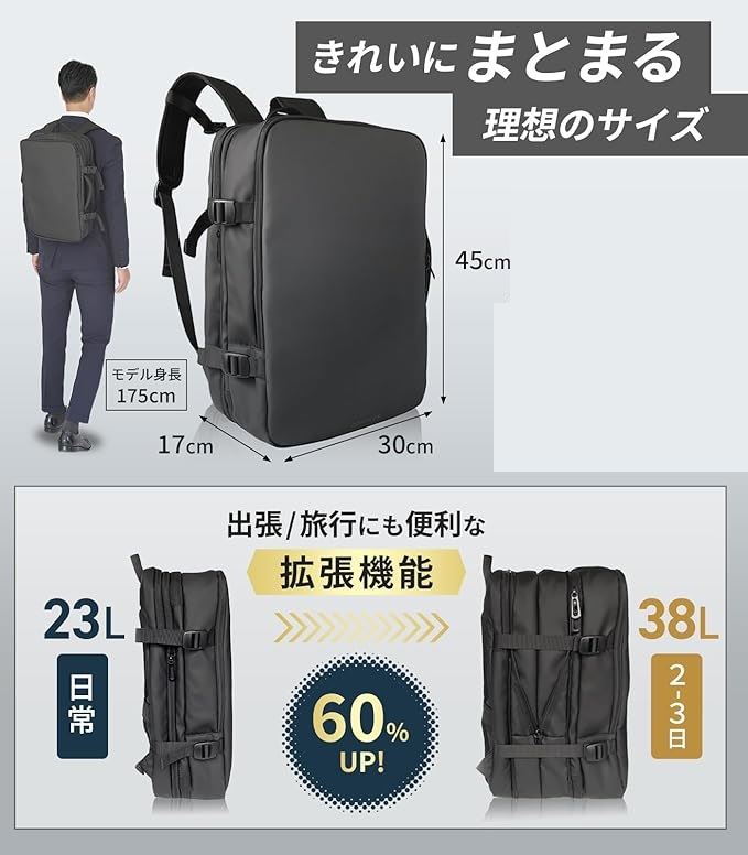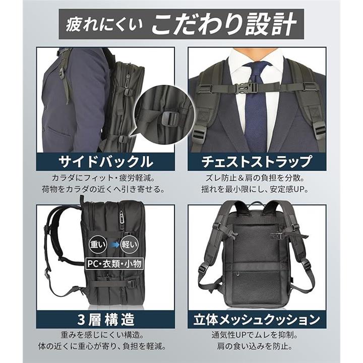国内メーカー 日本発 ビジネスリュック メンズ バッグ 大容量 拡張 防水 撥水 シンプル 自立 2泊 スーツ 23L 38L 通勤 通学 出張 旅行 機内 プレゼント ギフト