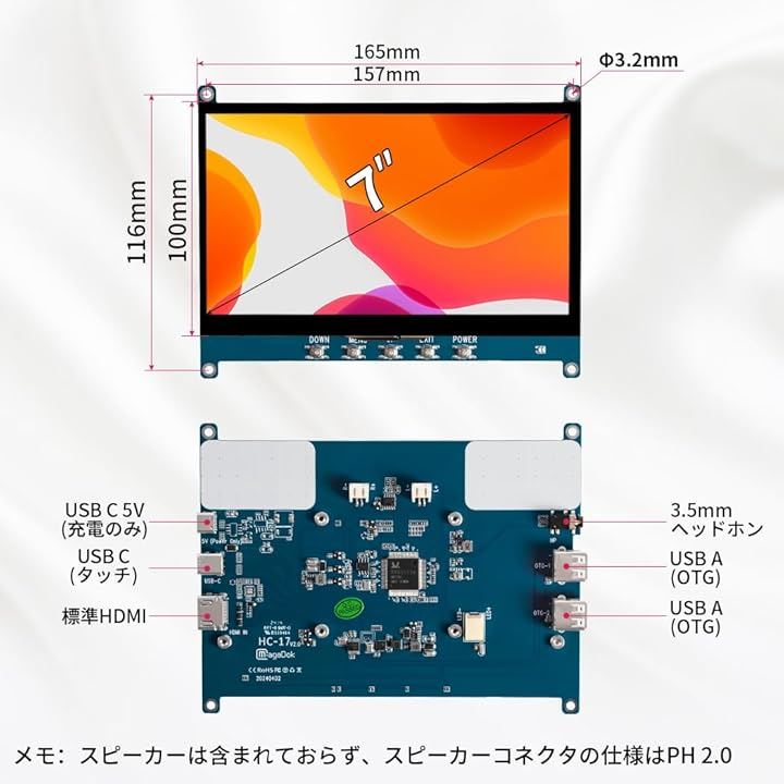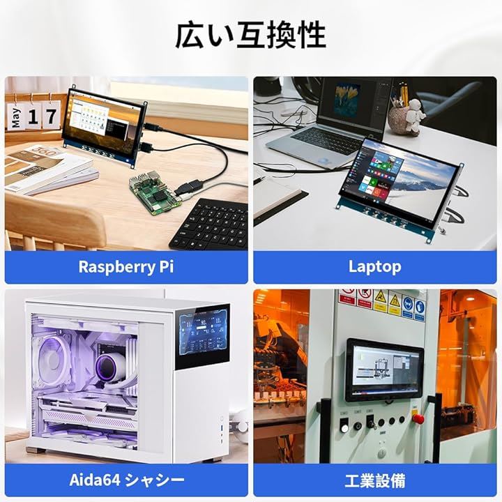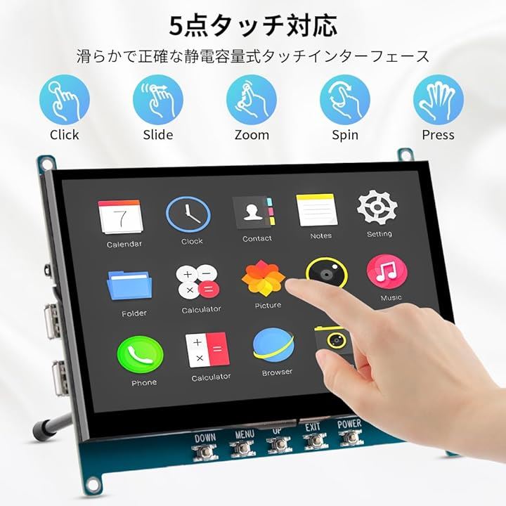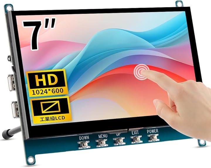 7インチ 小型モニター タッチ モバイルモニターIPS 1024x600 高輝度 5V給電 OTG搭載 小型ディスプレイミニ PC ラップトップ Rasp Pi用