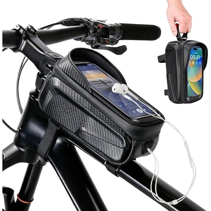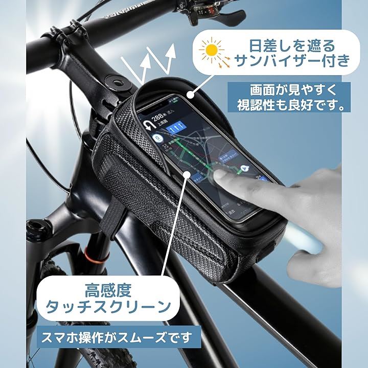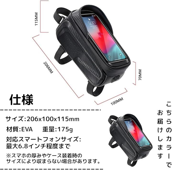 フレーム バッグ 自転車用 防水 EVAケース スマホ収納 TPUタッチパネル 6.8インチ対応 トップチューブ型