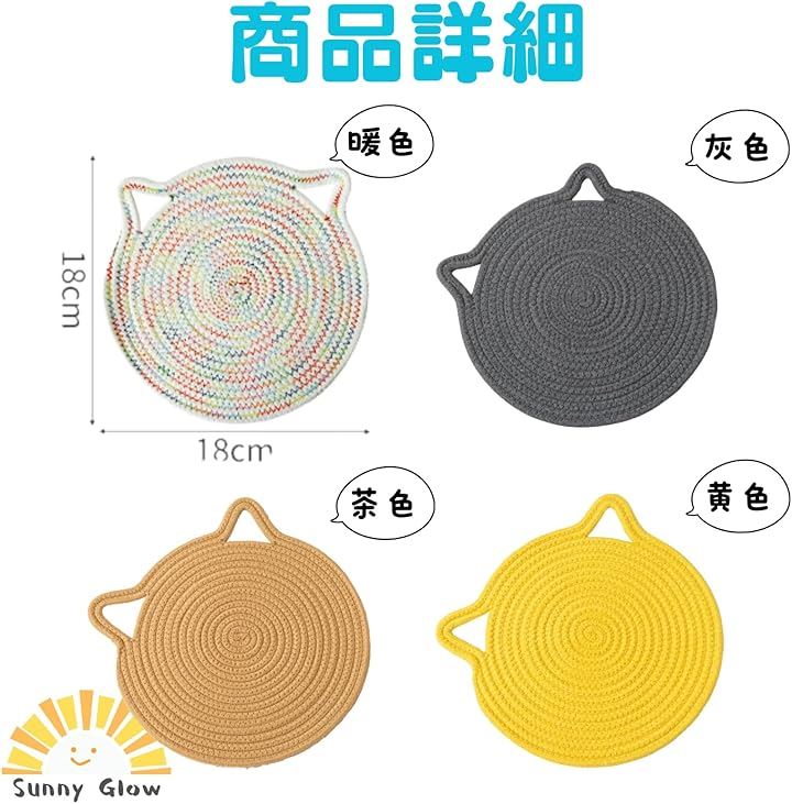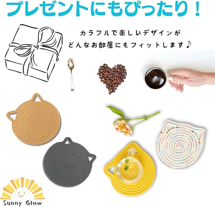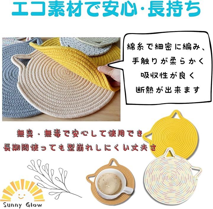 猫 コースター 鍋敷き 耐熱 おしゃれ かわいい 猫耳 天然素材 プレゼント ギフト 贈り物 食卓 アニマル