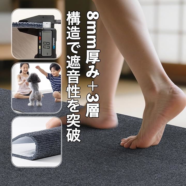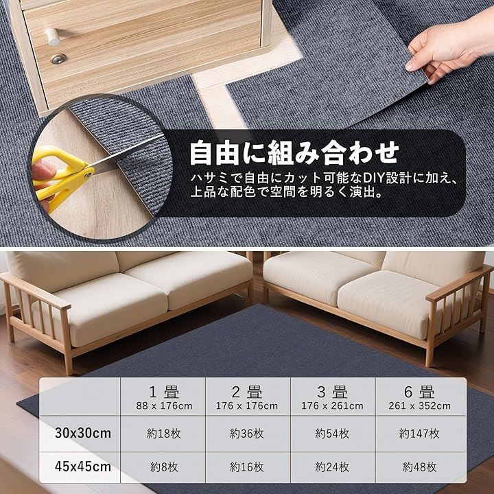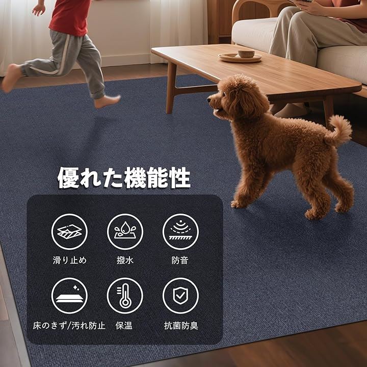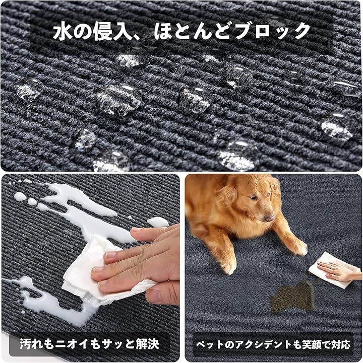 タイルカーペット 撥水 タイルマット フロアマット 滑り止め 防音 ペット用カーペット フローリングカーペット 保温 洗濯機洗える お手入れ簡単 設置簡単 DIY可能 吸着マット