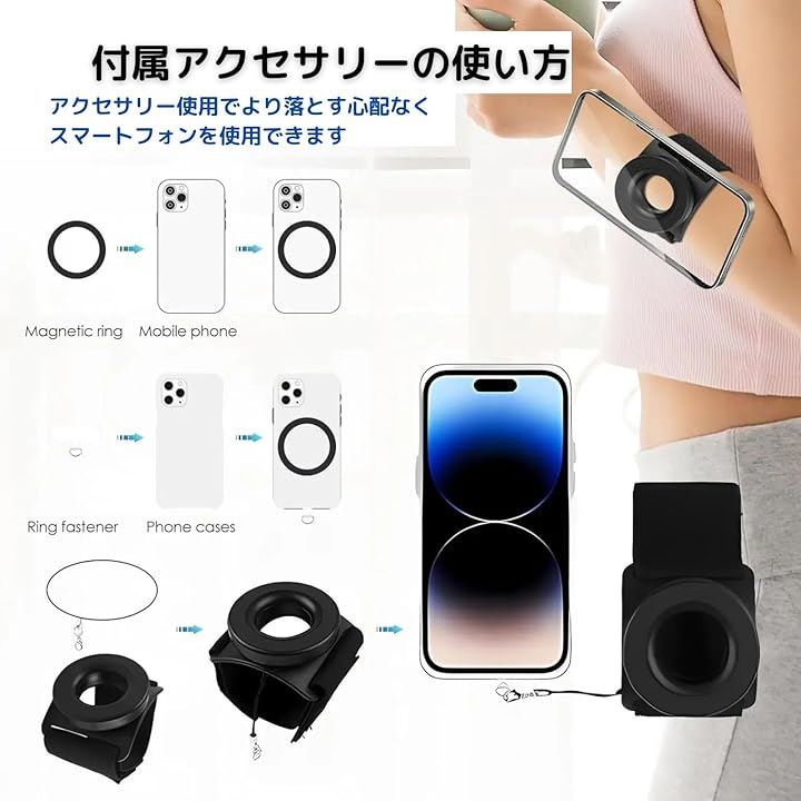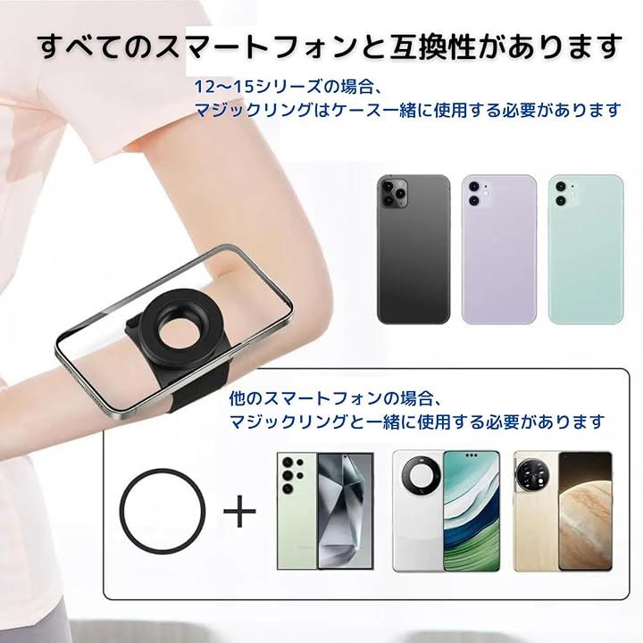 ランニング スマホ スマホホルダー ランニング携帯スタンド 腕 360°回転可能な磁気腕帯携帯スタンド アームバンド 磁気携帯スタンド 4-6.5インチのスマホに対応