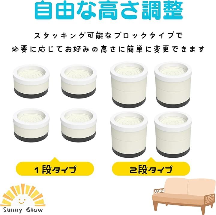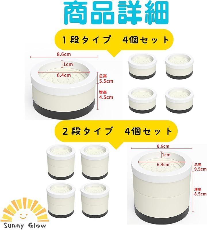 高さ調整 継脚 足上げ テーブル 机 椅子 ソファ ベッド こたつ 家具 継ぎ足し 丸型 4個セット