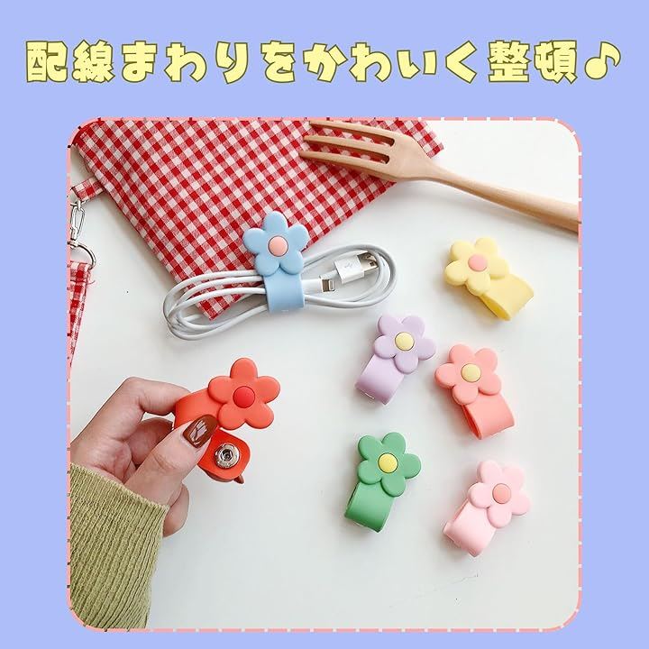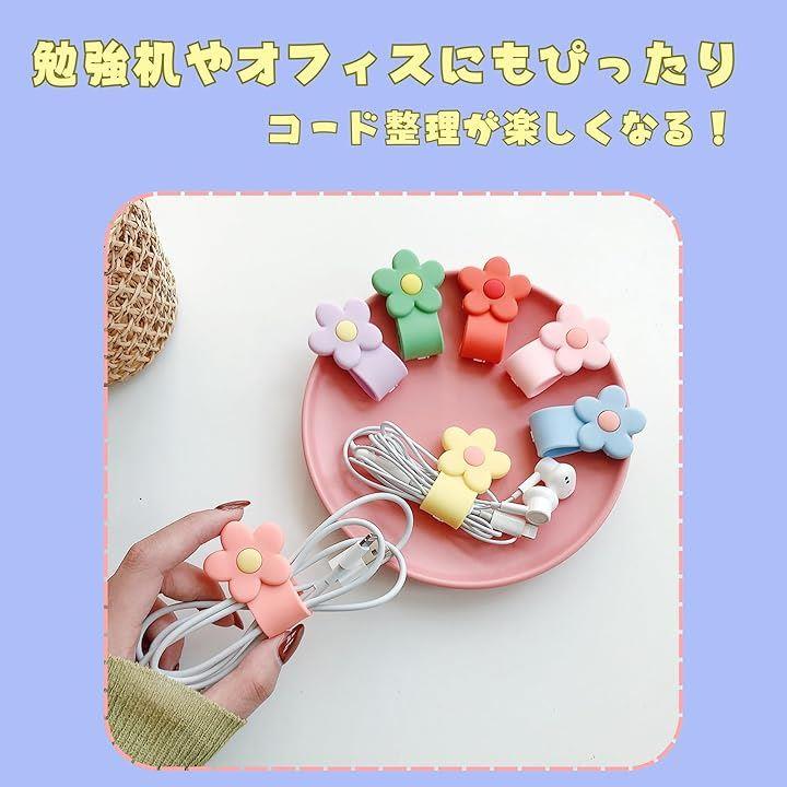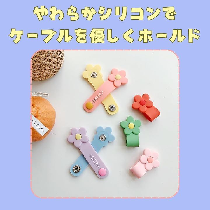 シリコン フラワー ケーブルオーガナイザー 配線クリップ 花モチーフ 2個セット