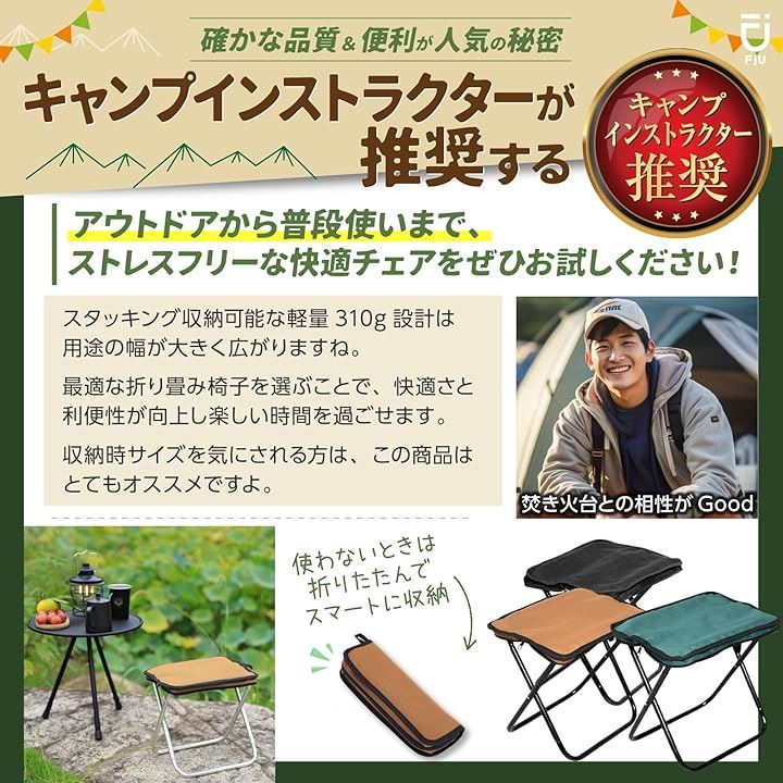 キャンプインストラクター推奨 折りたたみ 椅子 アウトドア チェア 折り畳み椅子 軽量 コンパクト