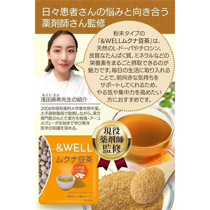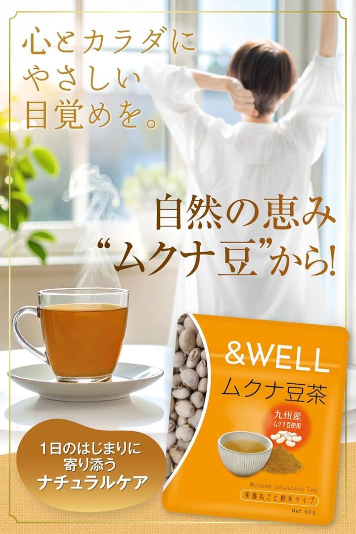 ムクナ豆茶 やる気 元気 集中力ドーパミンの元 栄養まるごと粉末茶 農薬不使用 ノンカフェイン 九州産