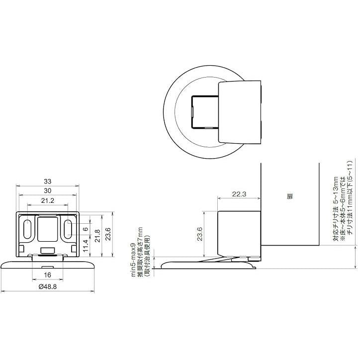 中尾製作所 カイトPLUS S100-N NDS-0108 ドアストッパー マグネット 室内 DIY 戸当り 対応扉重量:30kg以下 静音 コンパクト ノイズレス