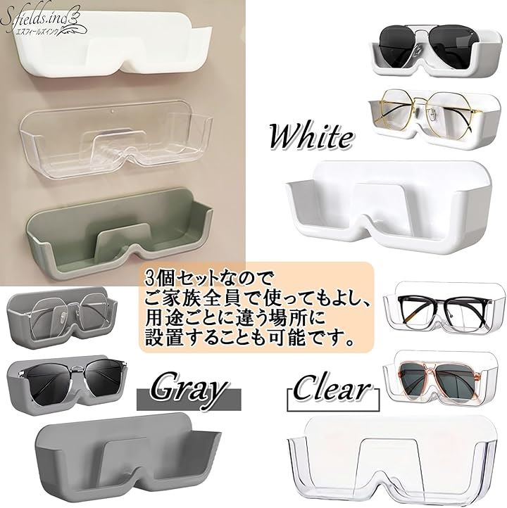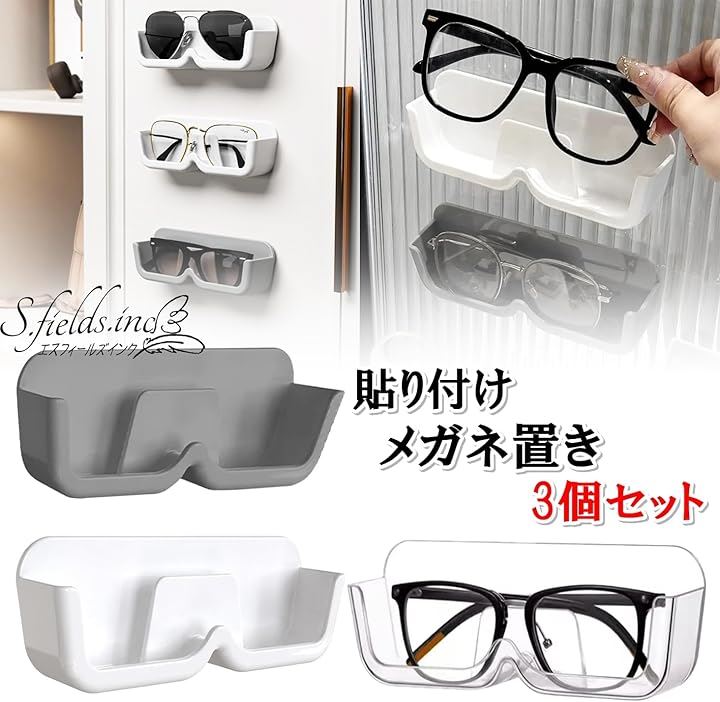 メガネ置き 壁掛け メガネスタンド 3個セット サングラス 貼付け 工具不要 プラスチック