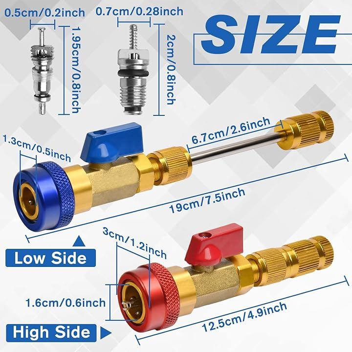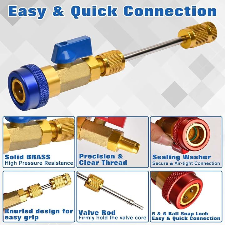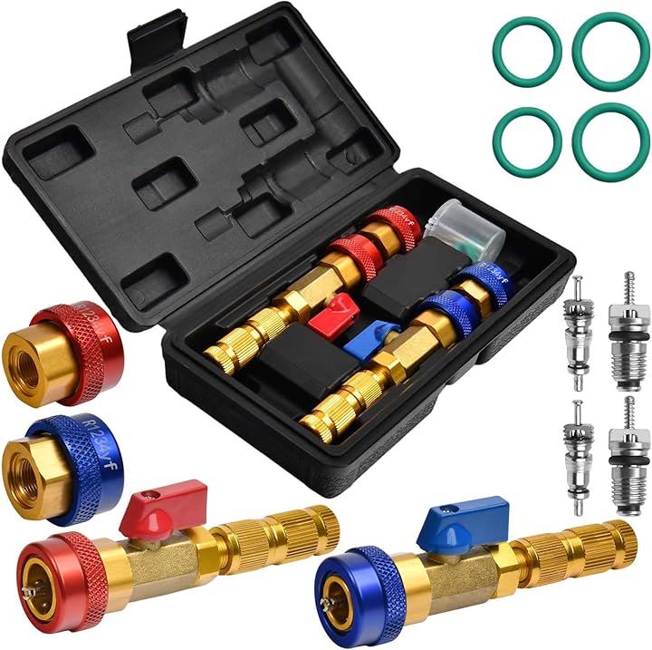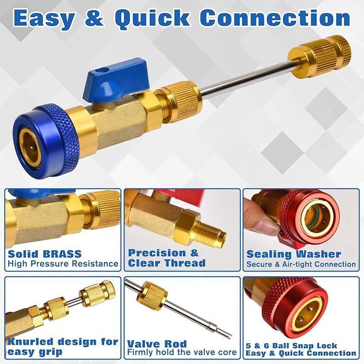 バルブコアリムーバー インストーラー ツール 12点セット R134a R1234yf R22 高低圧バルブ クイックリムーバー ガス抜かずにバルブコア交換可能 冷媒漏れ止めキット