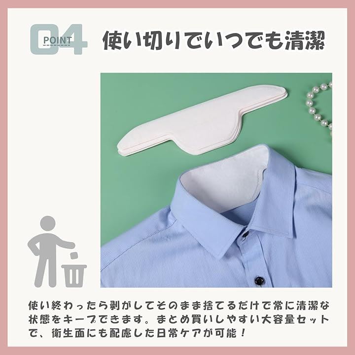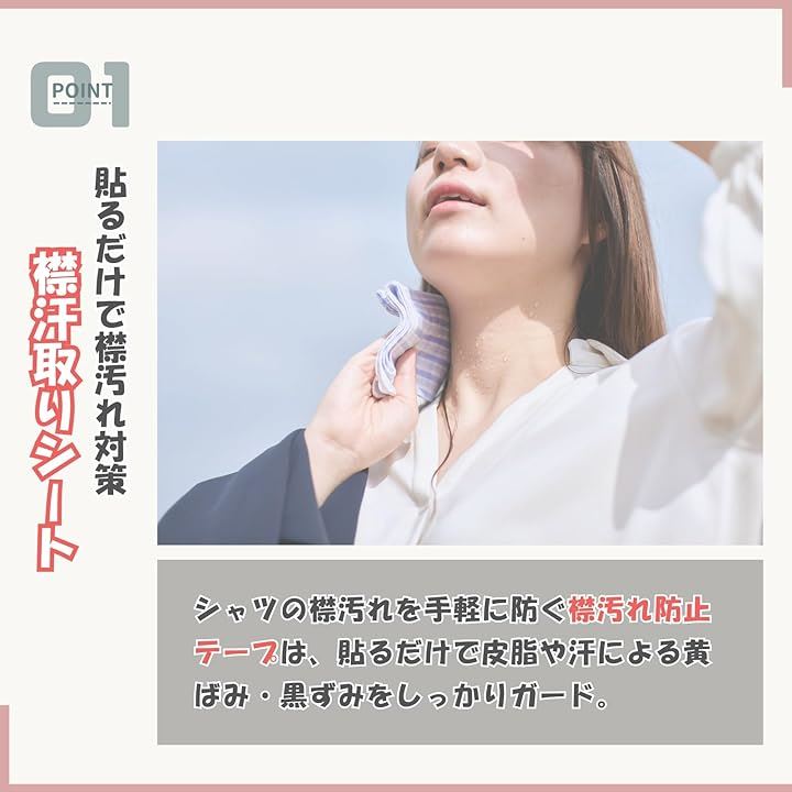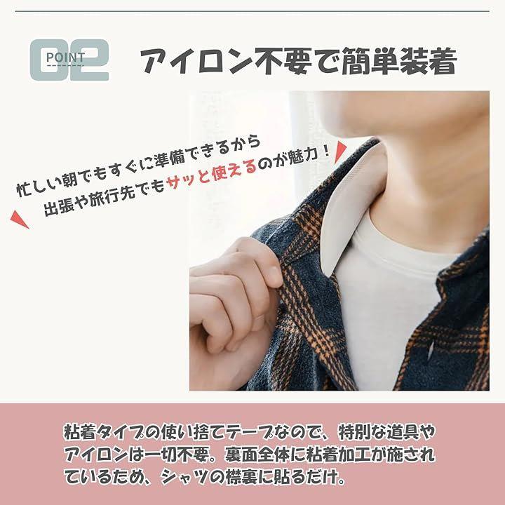 襟汗取りシート 汗対策 汚れ防止テープ 吸収パッド シャツ用 ブラウス 学生服用 ホワイト衣類 汗ジミ対策 衣類ケア