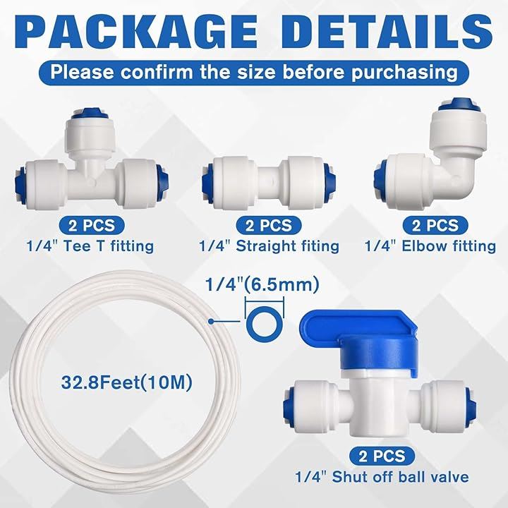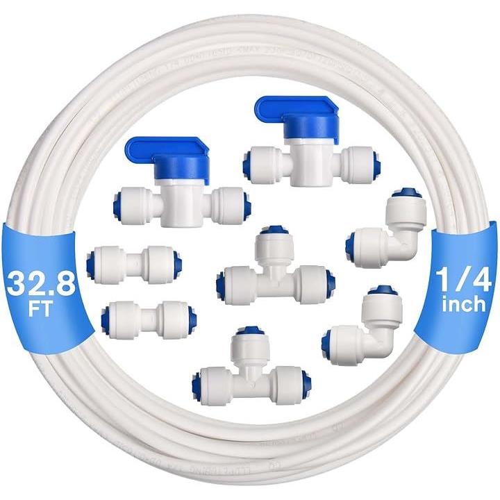 RO浄水器システム用ホースパイプ 外径6.5mm 1/4 長さ10M 32.8フィート 水道管用 RO浄水器継手 プッシュフィットストレートコネクタ クイックコネクター