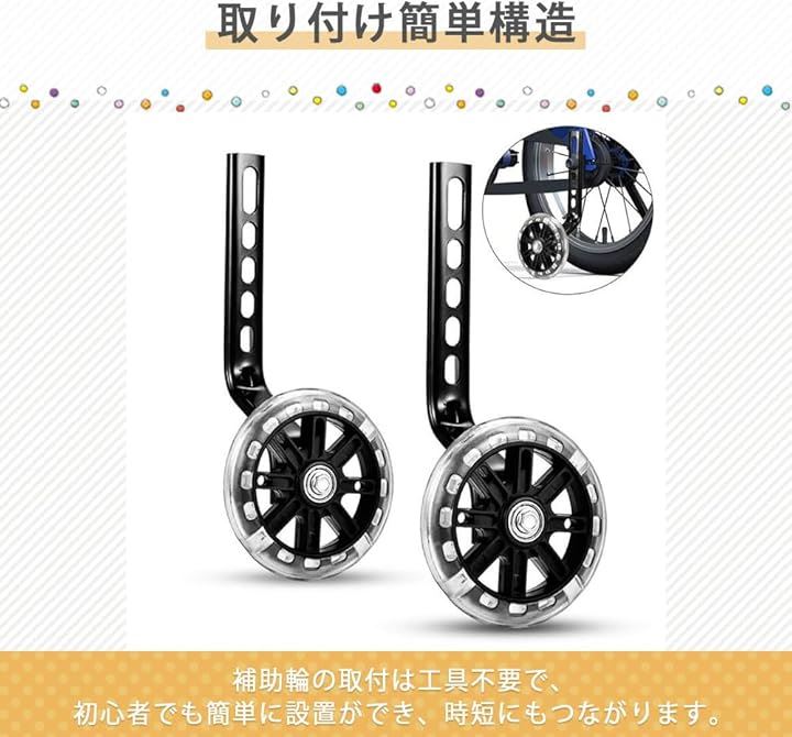 補助輪 12~20インチ キッズ 子供 練習用 自転車安定器 取付簡単 静音設計 自転車補助輪 5段階サイズ調整 カラフル