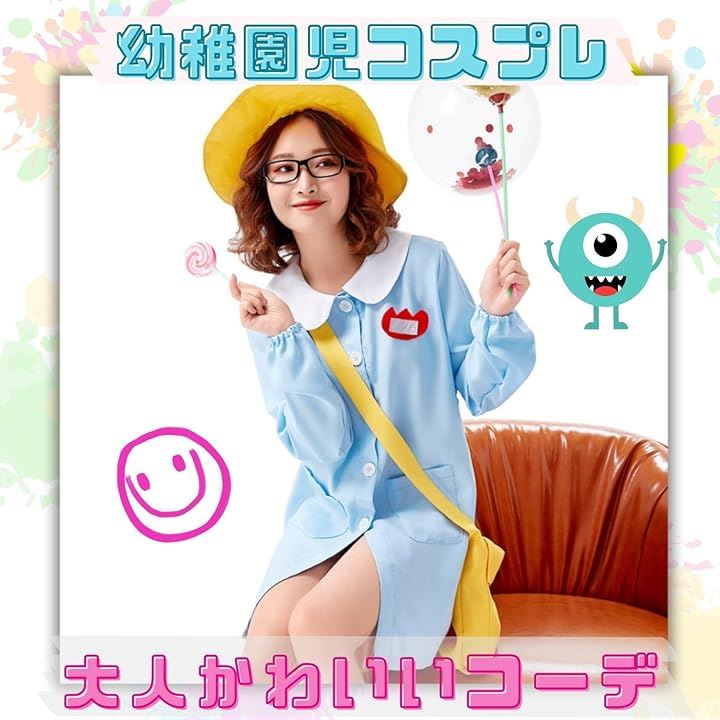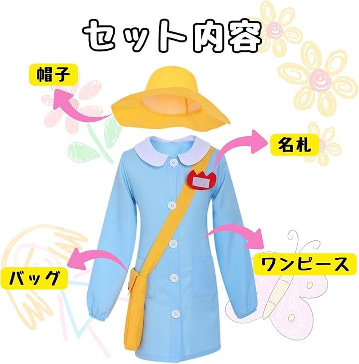 幼稚園児 コスプレ 女 大人 衣装 帽子 スモック バッグ 名札 4点セット 定番