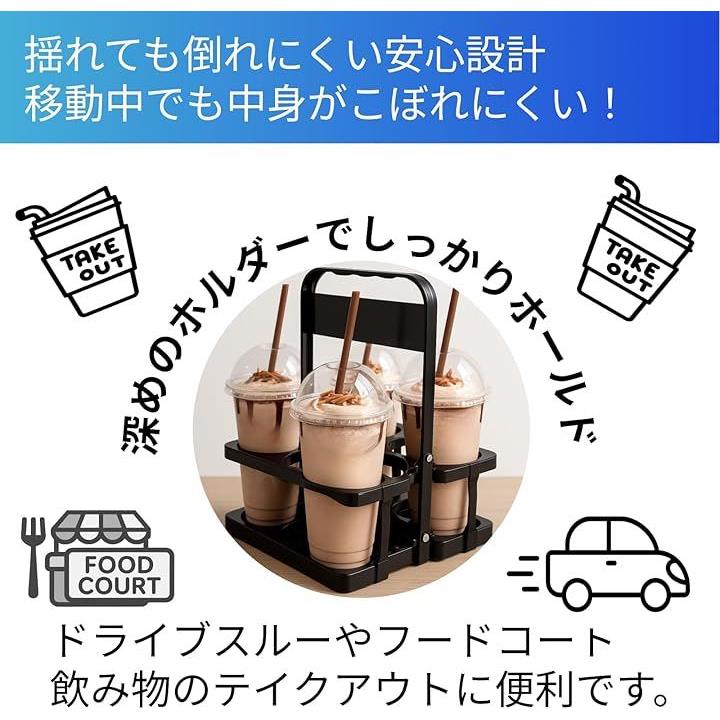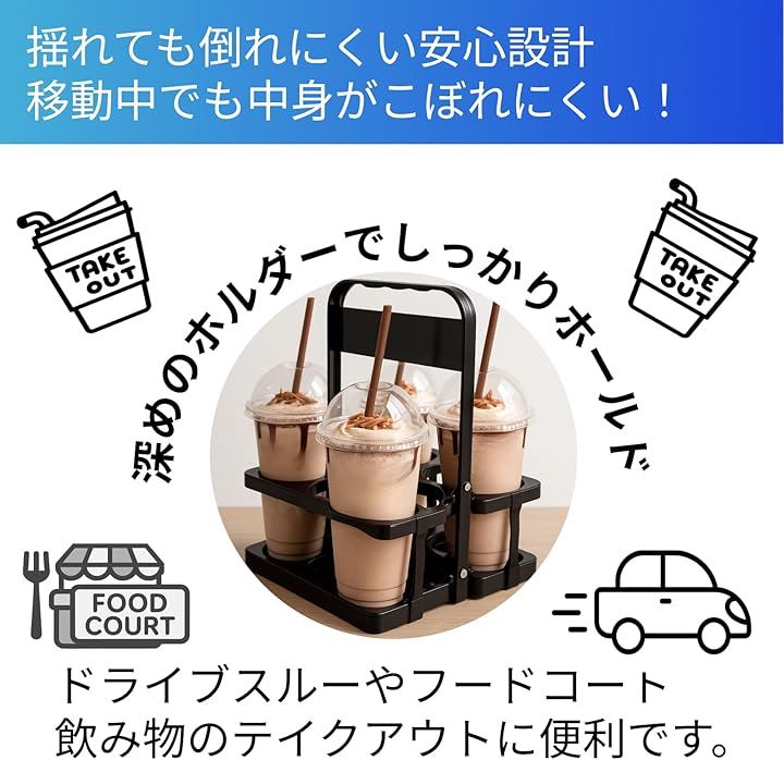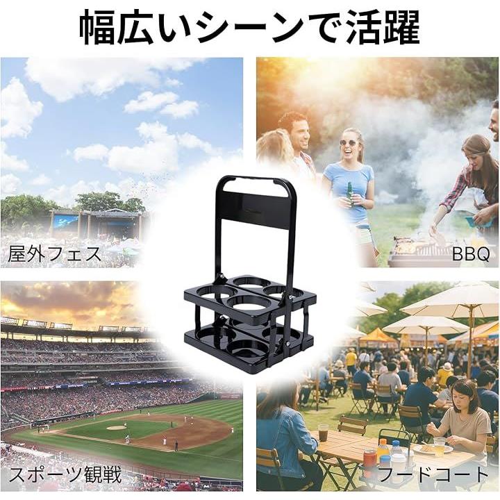 アウトドアや車移動中でもドリンクが倒れにくく、飲み物をまとめて運んでも中身がこぼれにくい安心感があります。