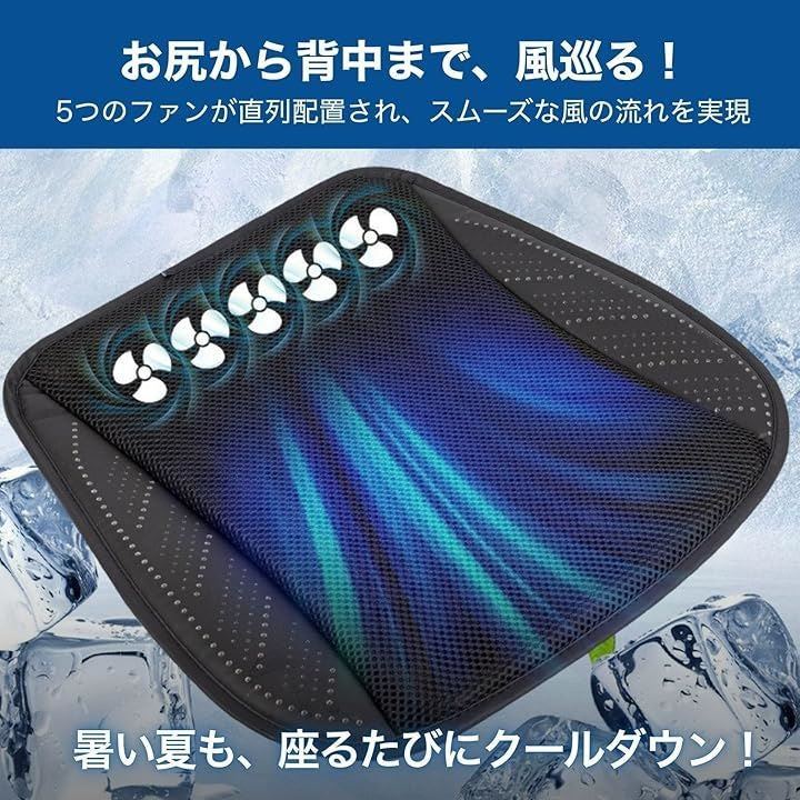 クールマット クールクッション 座布団 ファン 扇風機 5個 送風 冷風 風量調整 USB給電 熱中症対策 車内 室内 オフィス
