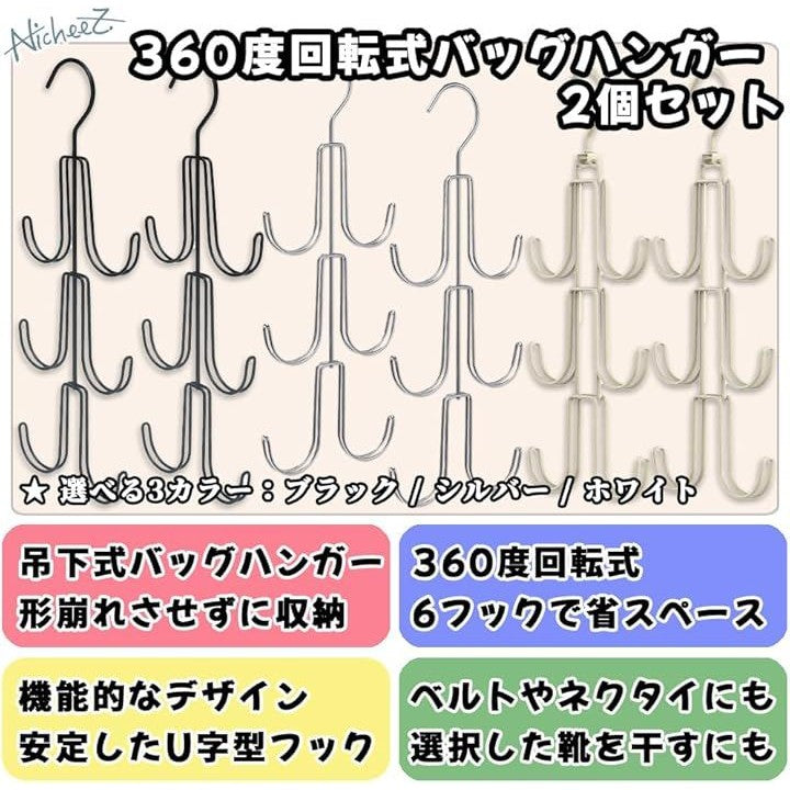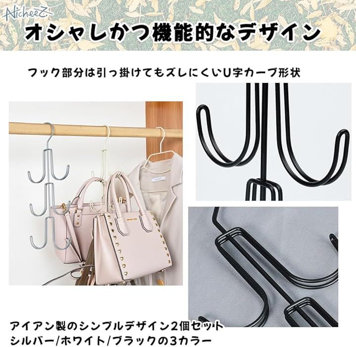 バッグハンガー バッグ収納ホルダー 吊り下げフック 2個セット 省スペース