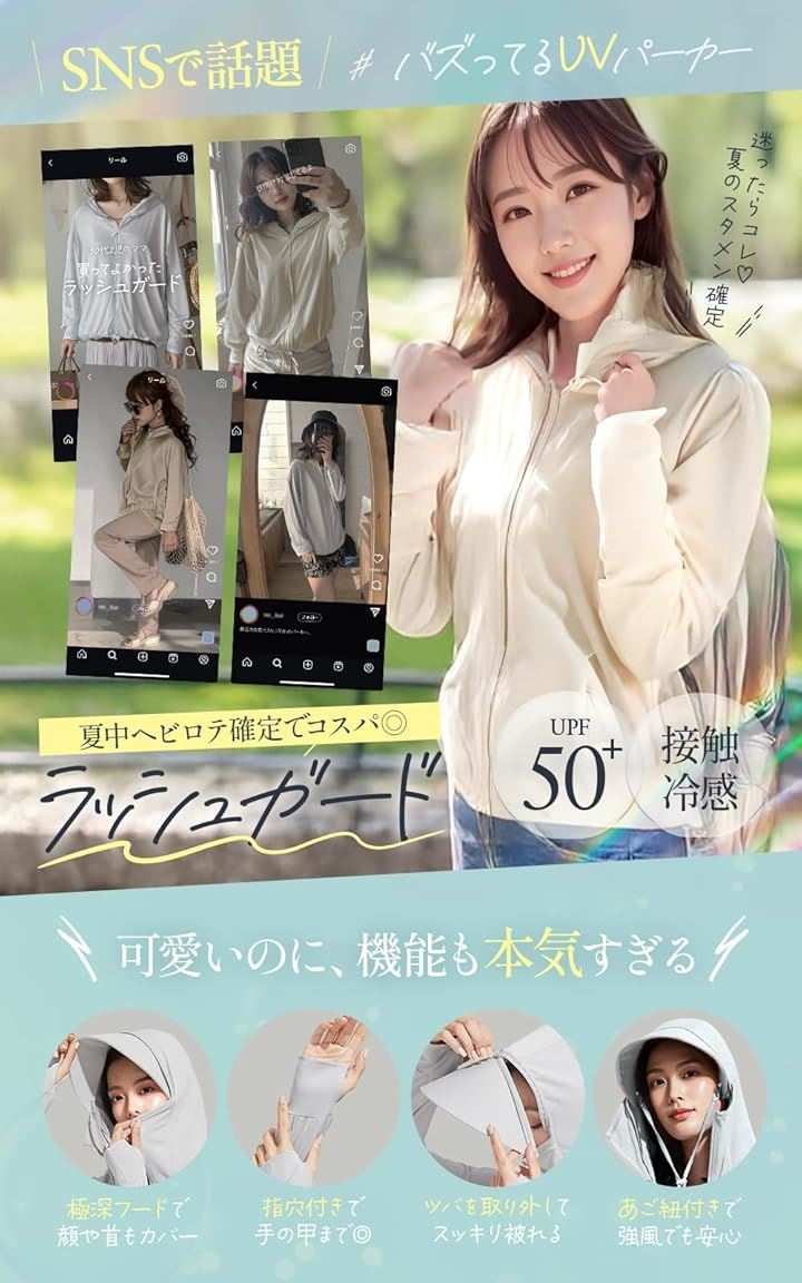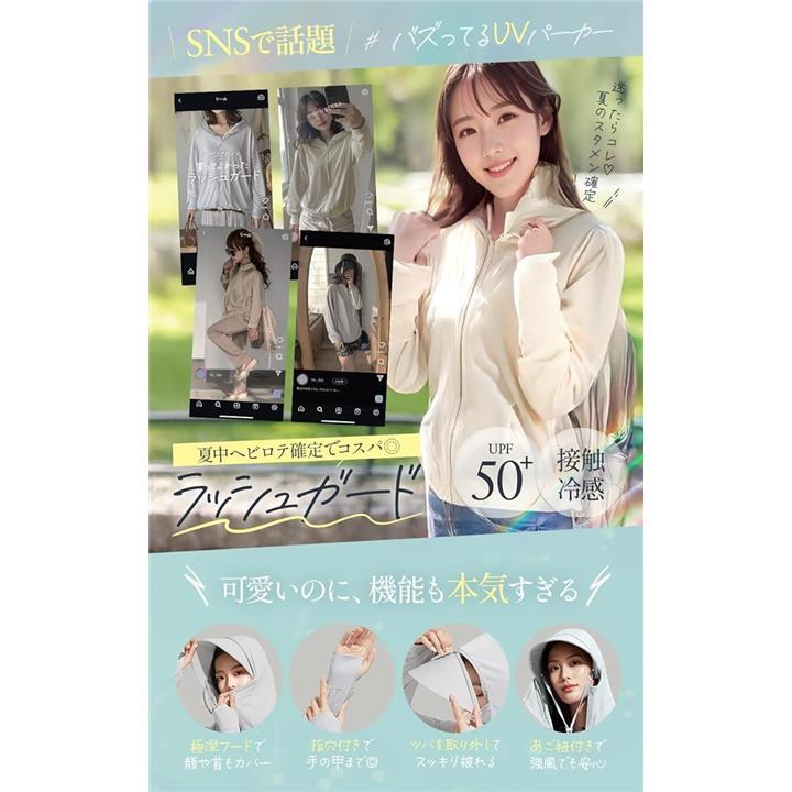 uvカット パーカー ラッシュガード レディース 水着 おしゃれ アウター 無地 UPF50 アームカバー 指穴 水陸両用