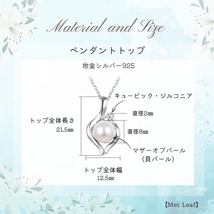 Cute jewelry Mei Leaf 淡水パール 淡水真珠 貝パール ネックレス レディース シルバー925 アジャスター付き