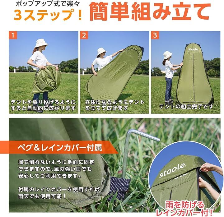スツーレ® 1人用テント 簡易トイレ 防災 外から開けられないファスナー 着替え 釣り キャンプ
