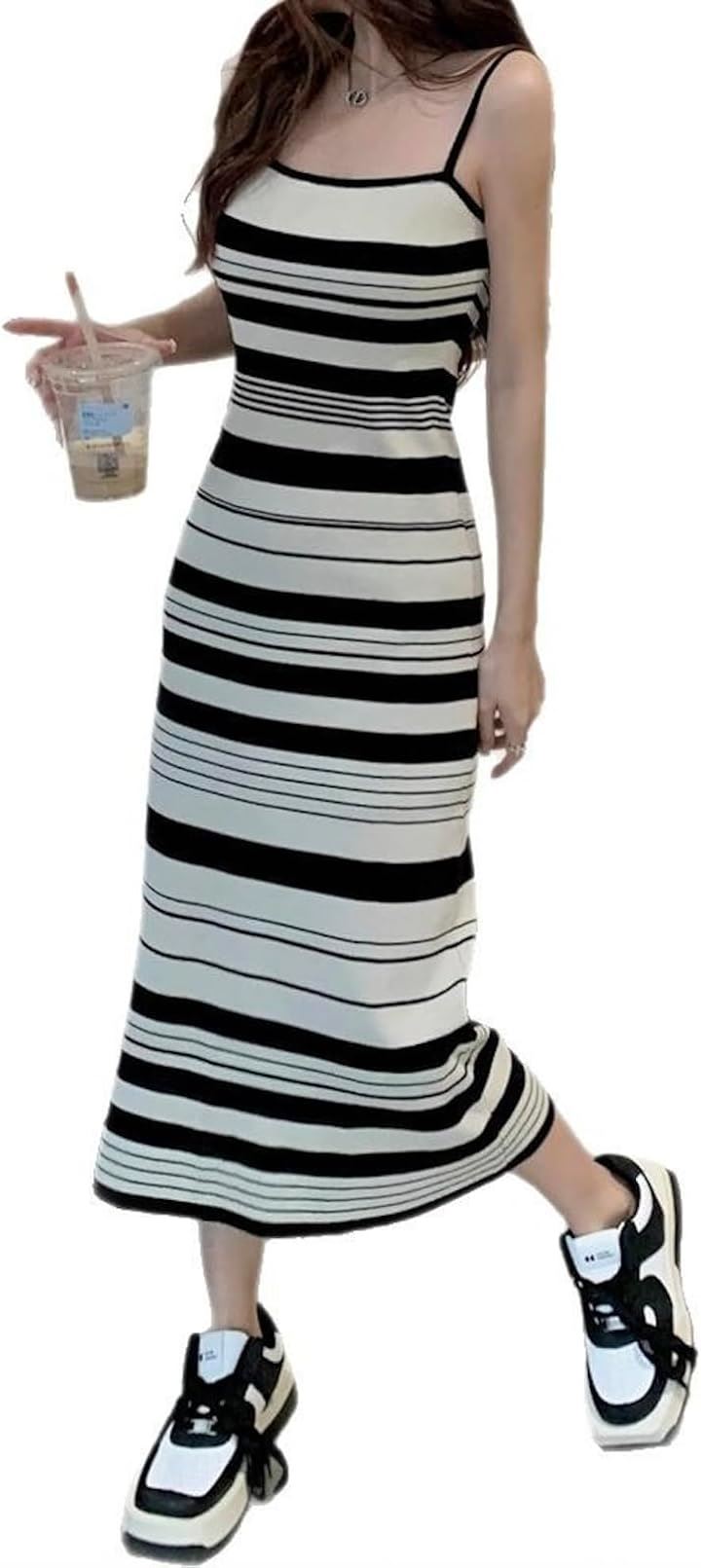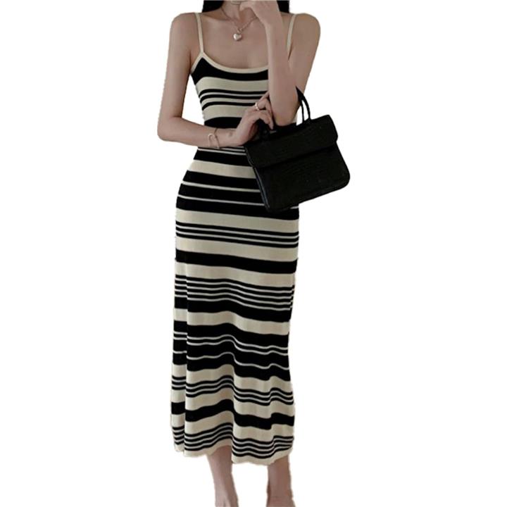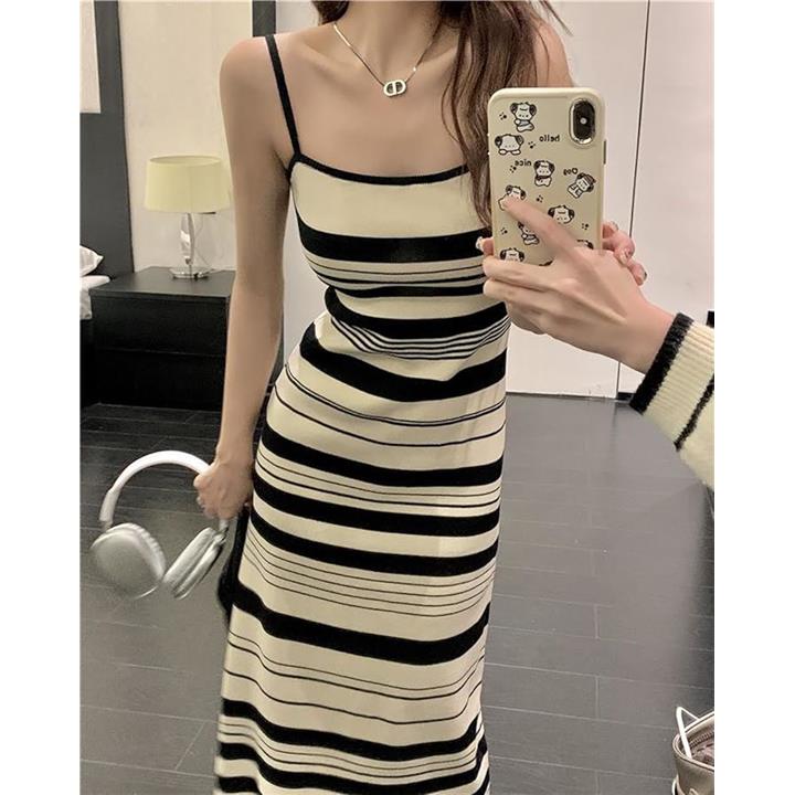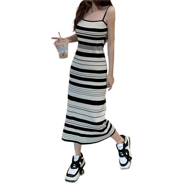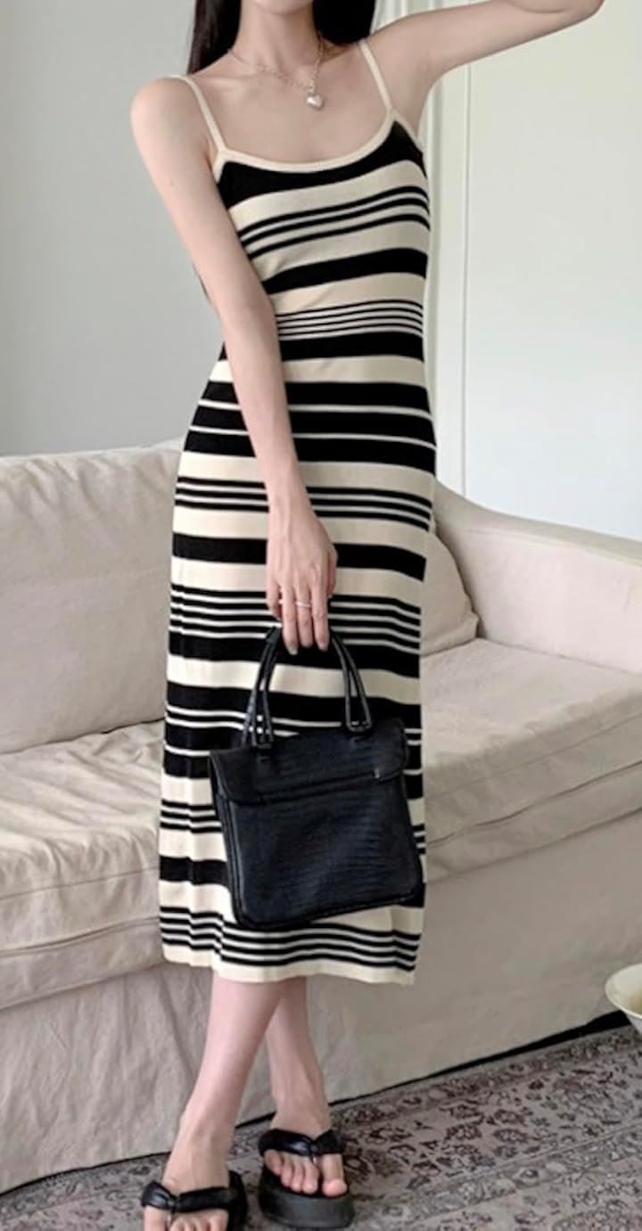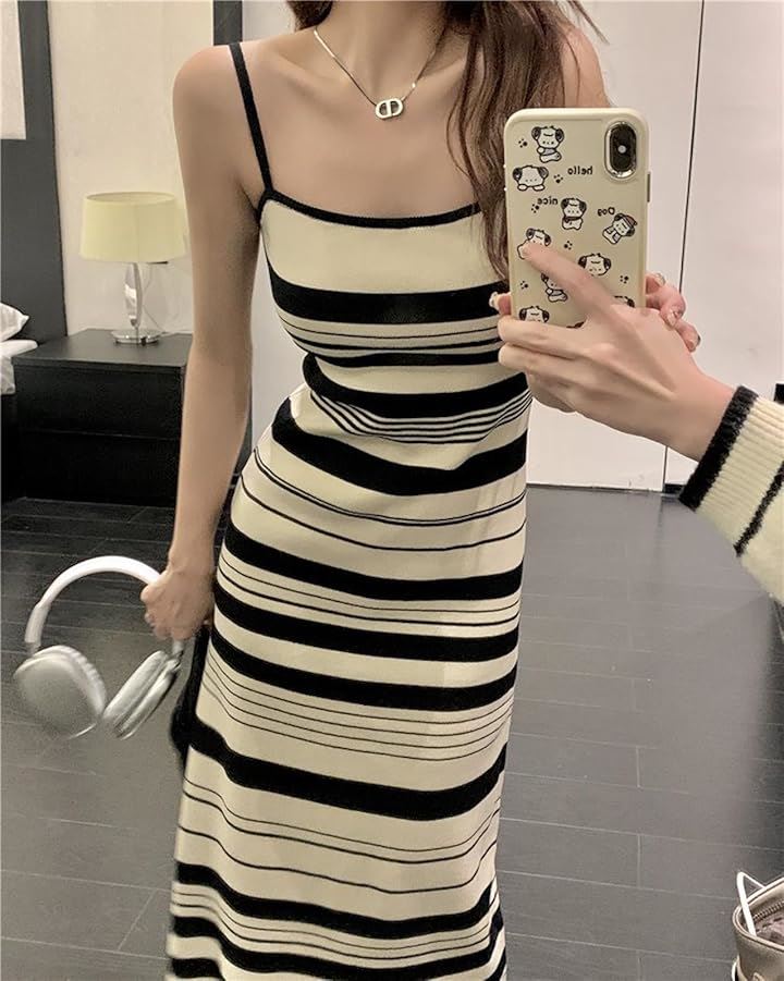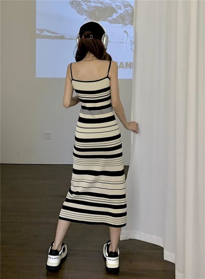 キャミ ワンピ ワンピース キャミソール クラシカル モノトーン レディース 無地 シンプル セクシー ニット ストライプ 韓国風 スリム見え タンクトップ ミディ丈 可愛い カワイイ かわいい お洒落 おしゃれ オシャレ おでかけ きれいめ