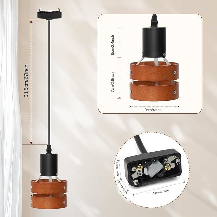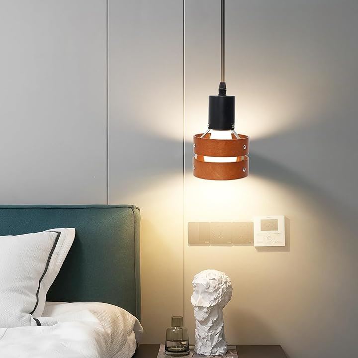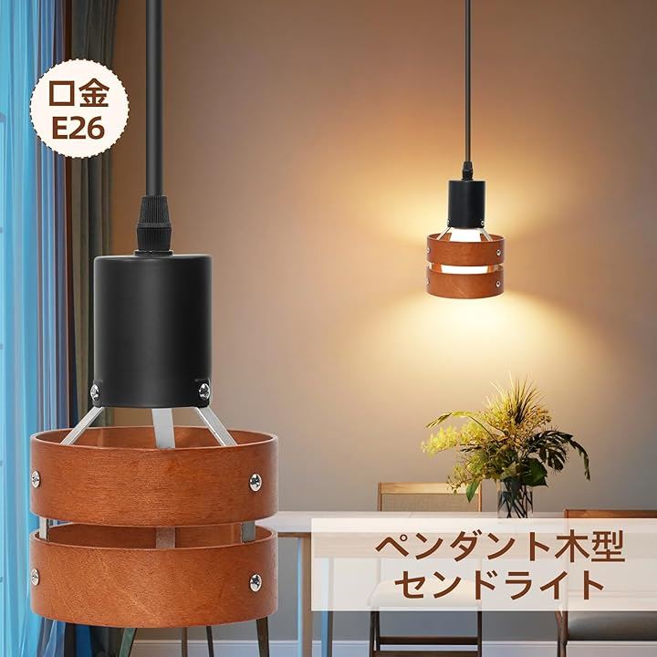 ペンダントライト 茶色の木製の円 引掛シーリング用 E26口金 長さ調整可能 ロック機構により脱落を防止 太いロープ 高級 和風 目に優しい 節電 省スペース設計 寝室 高級レストラン 書斎 植物 水槽の照明 電球はありません
