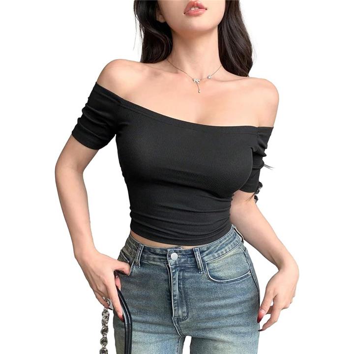 セクシー オフショルダー Tシャツ 無地 スリム フィット ショート丈 レディーストップス カットソー 半袖 カジュアル 韓国風 おでかけ