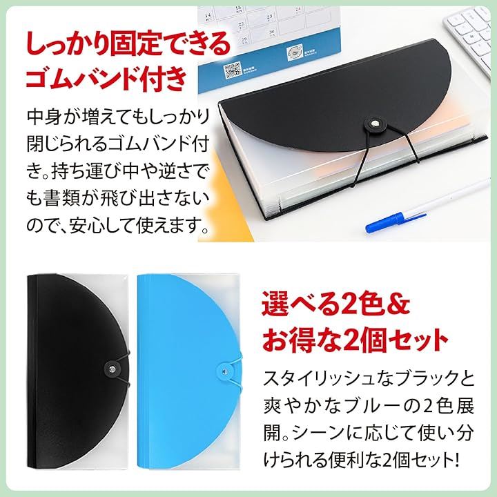レシート収納 じゃばら式 ファイル 通帳 印鑑収納 ゴムバンド付 2個セット