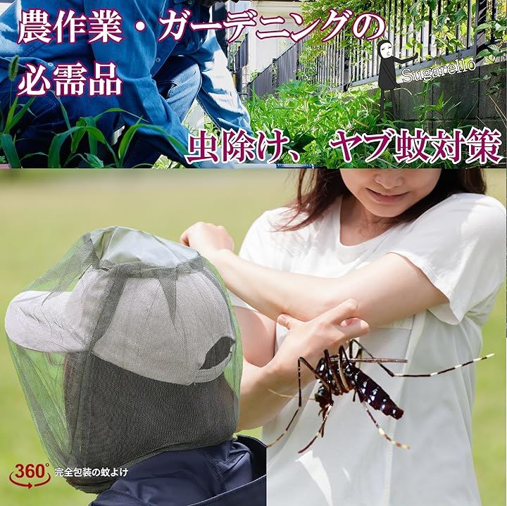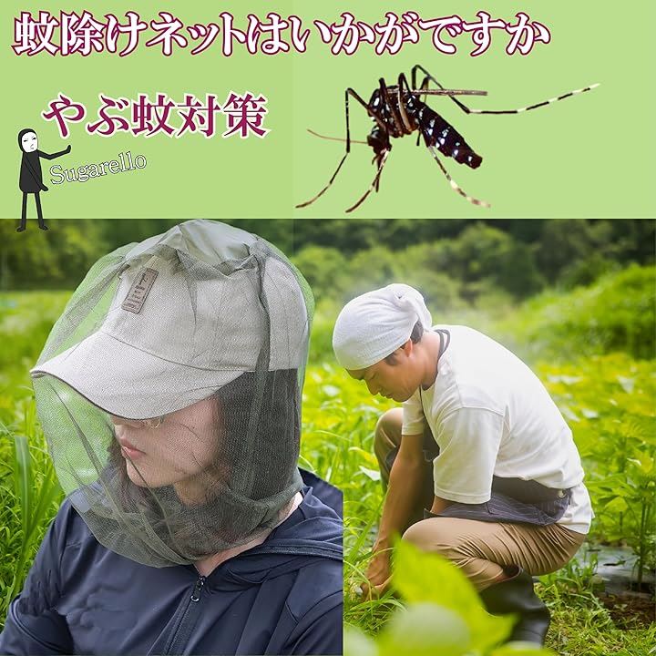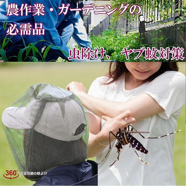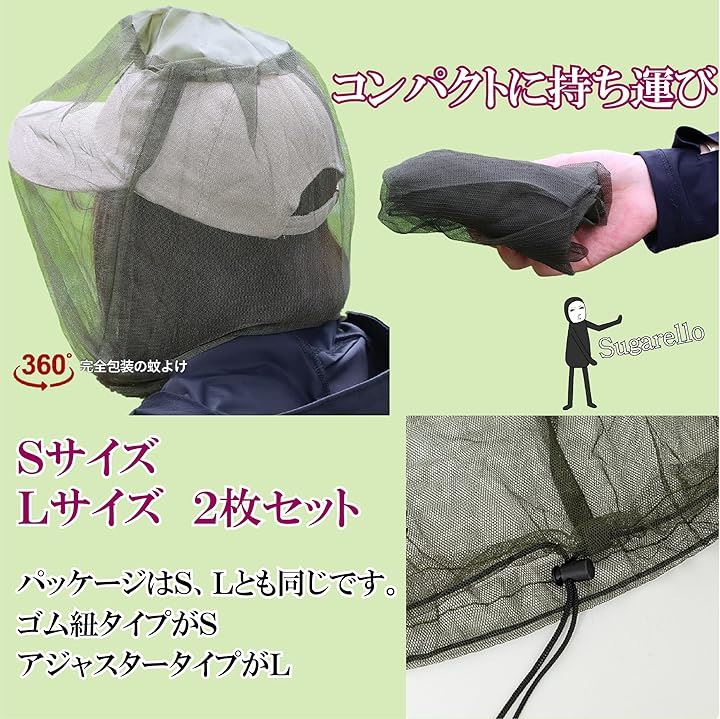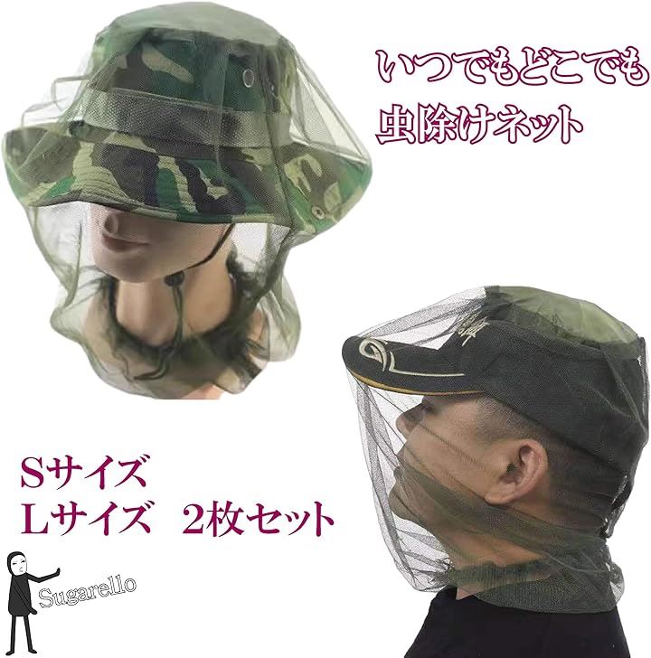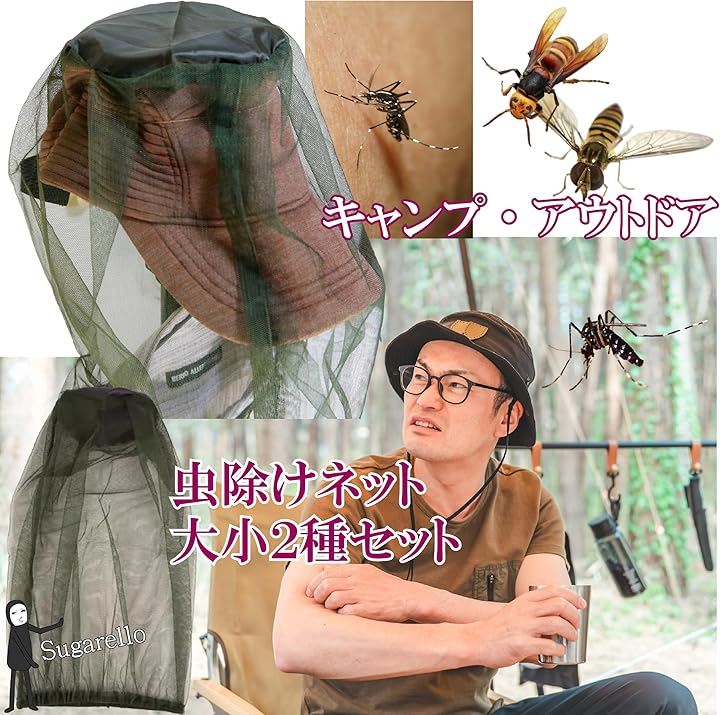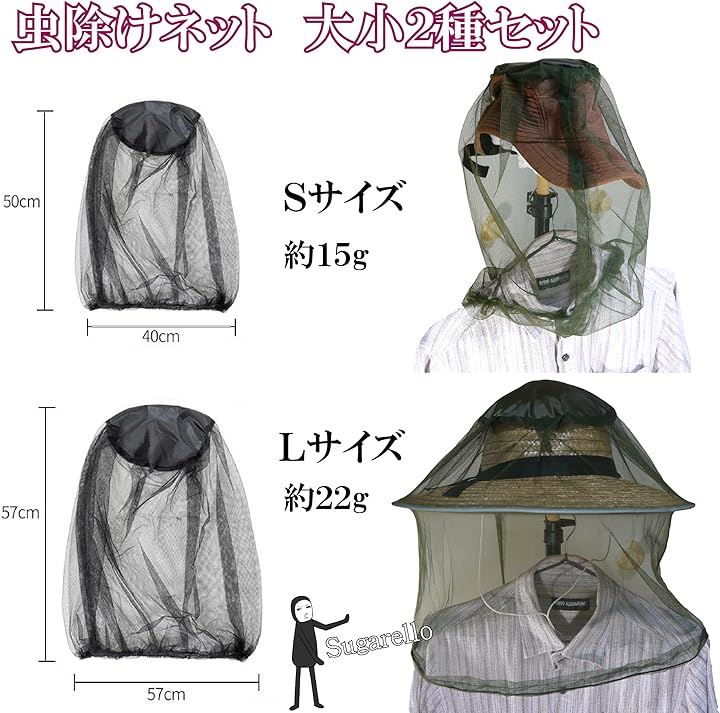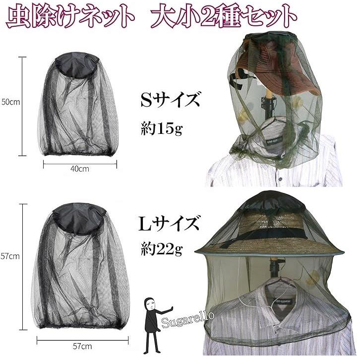 藪蚊 虫除けネット アウトドア 農作業 園芸 防虫ネット 蚊除け 男女兼用 帽子取付用 フェイスカバー 蚊帳 大小2種セット