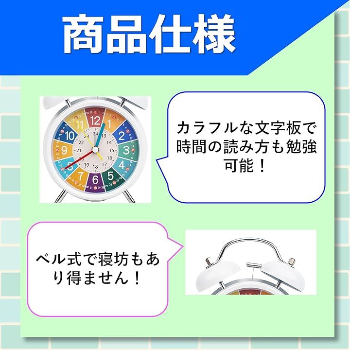 目覚まし時計 子供用 ベル音 大音量 カラフル 置き時計 アナログ キッズ 学習時計 おしゃれ かわいい