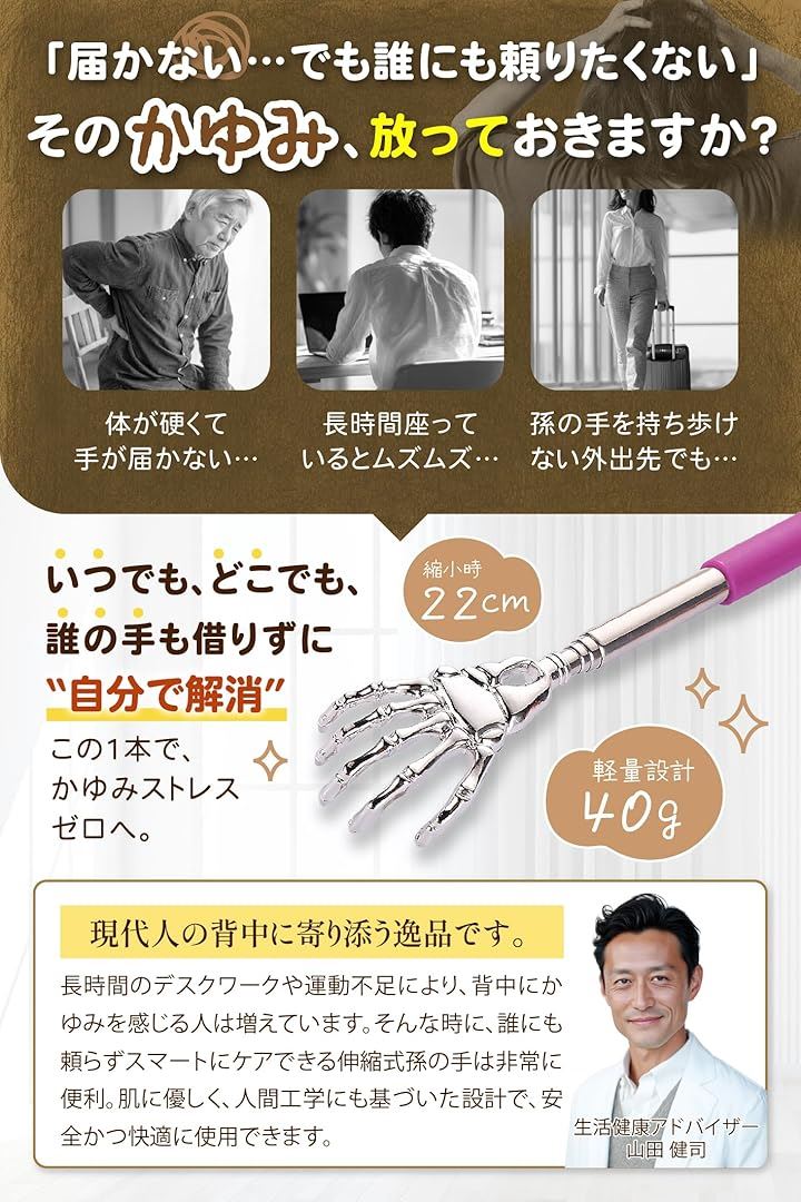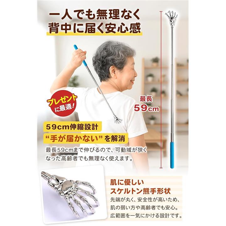 孫の手 まごの手 伸縮 背中かき棒 日本製 熊の手 折りたたみ ステンレス コンパクト