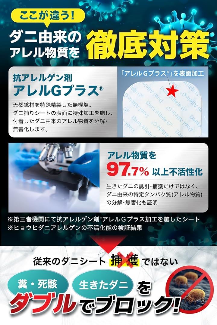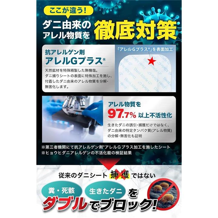 アレル物質とWアプローチダニアレルG ダニ取りシート ダニ駆除 アレル物質低減 アレルゲン 無害化 犬用 猫用 置くだけ日本製 臭くない 丸まらない