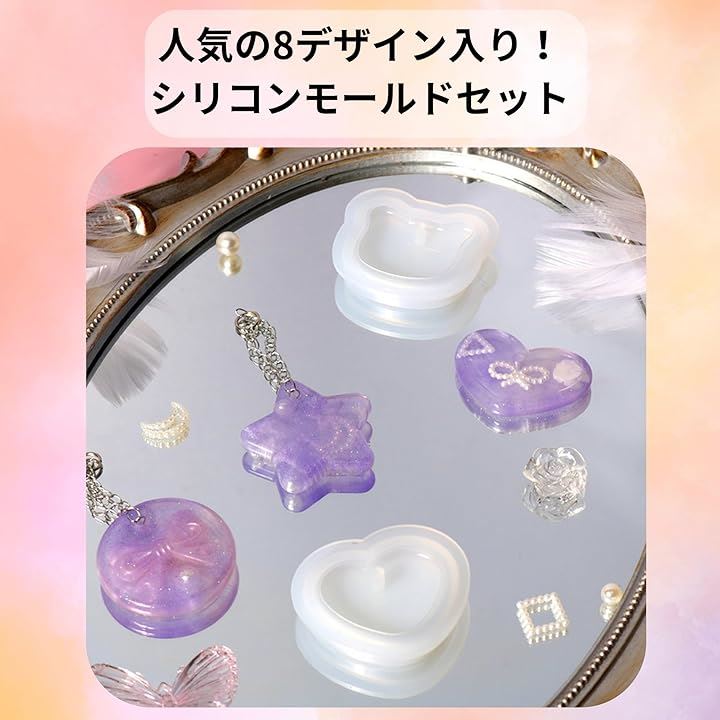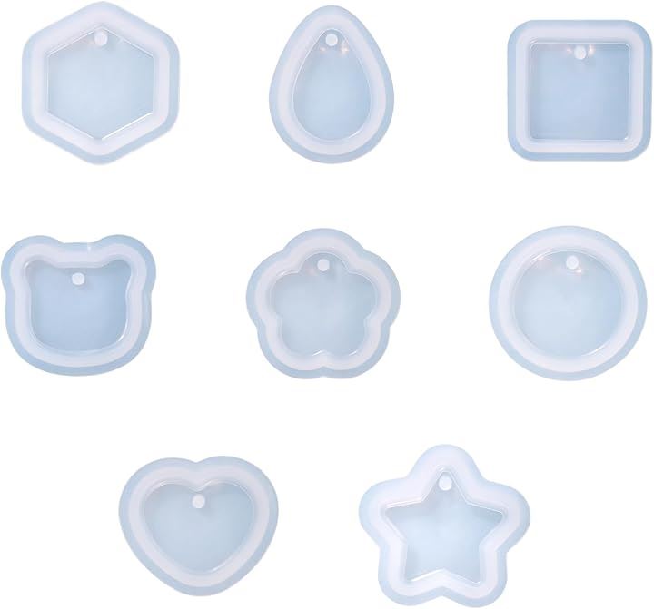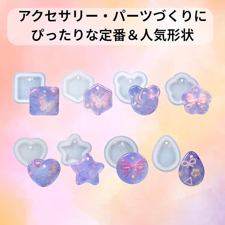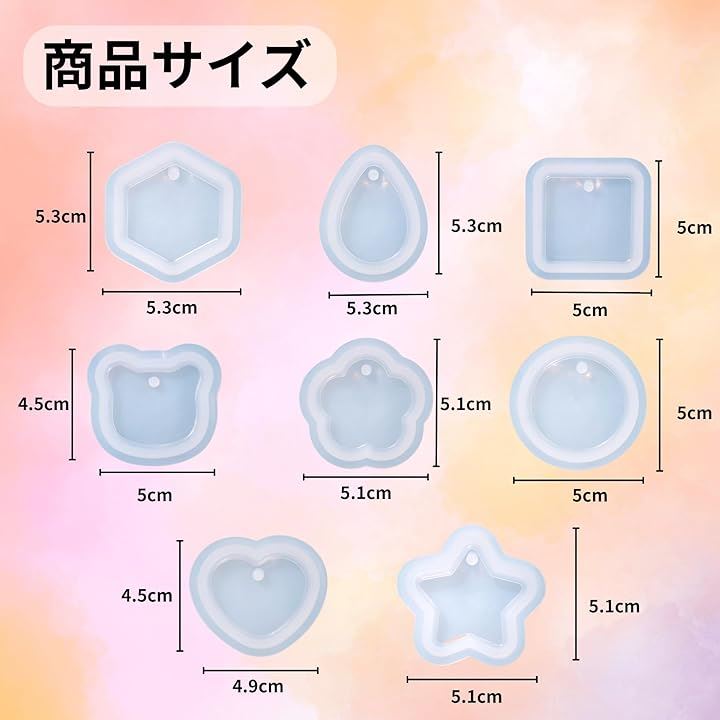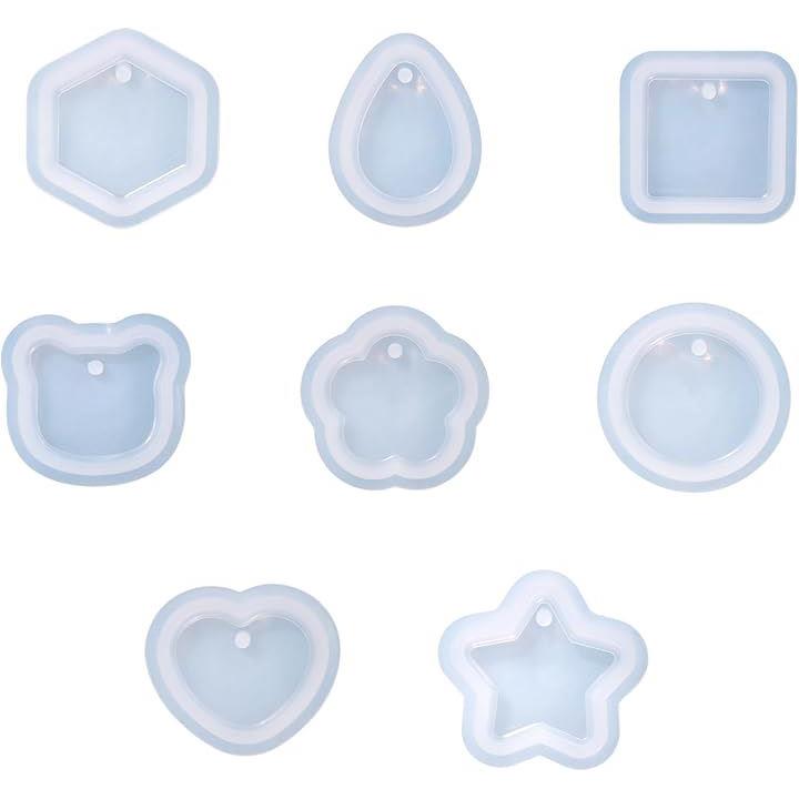 シリコンモールド 8種セット ハート・星・水滴・花・くま・丸・六角形・正方形 レジン用型取り ハンドメイド アクセサリーパーツ UVレジン対応