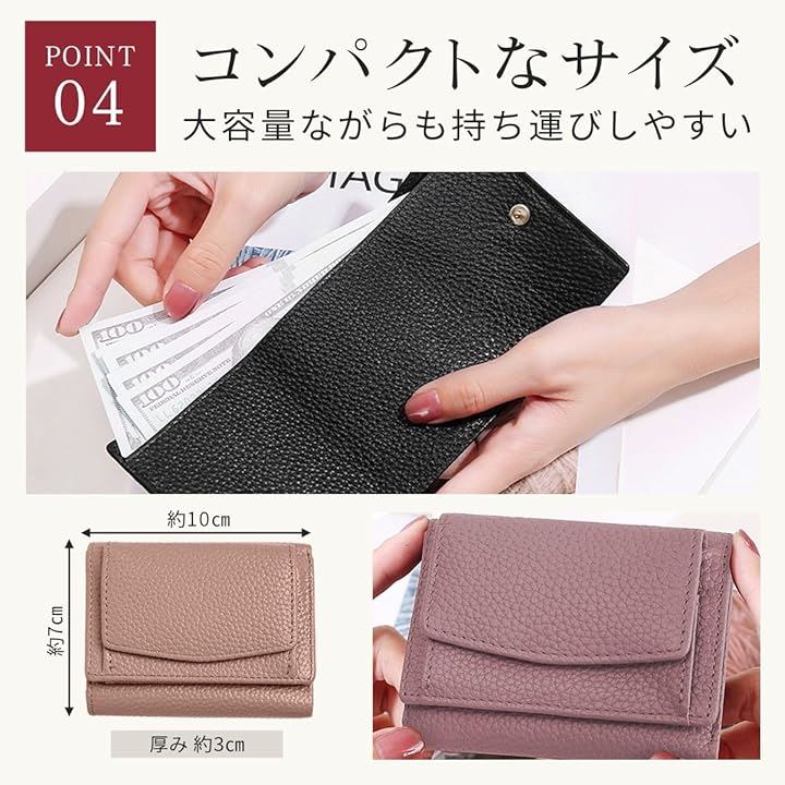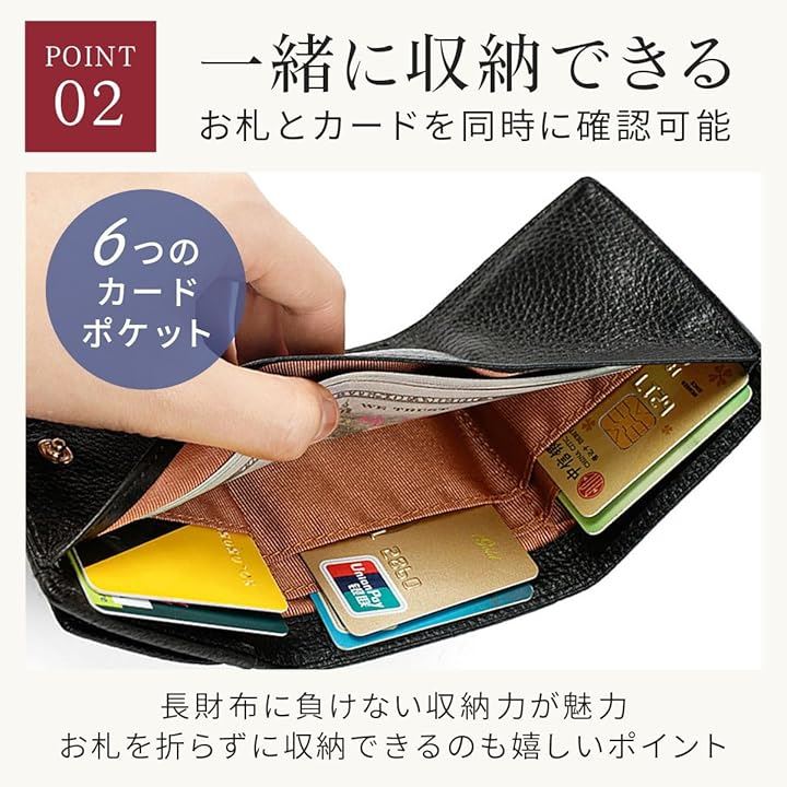 「コンパクトでも驚きの収納力|三つ折りミニ財布」手のひらサイズのスマートなフォルムながら、驚くほどの収納力を誇る三つ折り財布です。