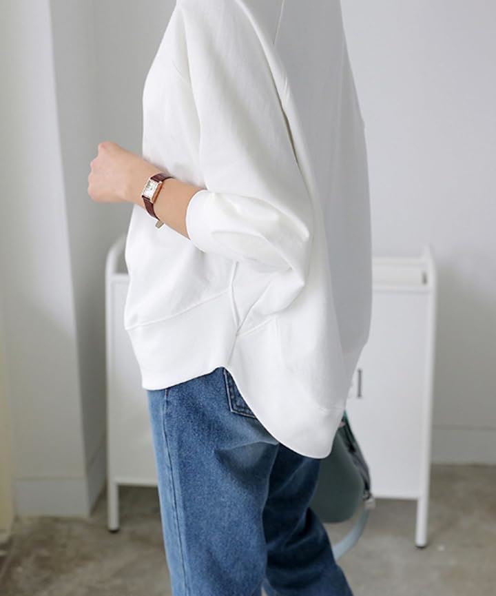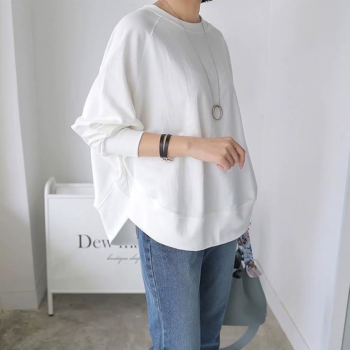 レディース トップス スウェット トレーナー ドルマン スリーブ カジュアル 長袖 さらっと ゆったり おしゃれ とっぷす すうぇっと とれーなー ドロップ ショルダー カット ソー クルー ネック プルオーバー ロング