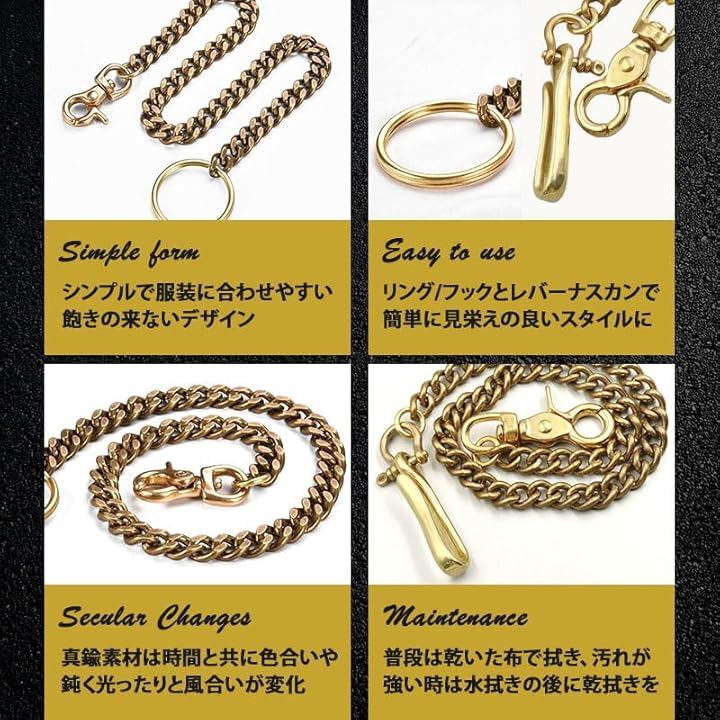 真鍮製 真鍮無垢 ブラス 喜平 小豆チェーン フック/リング レバーナスカン アクセサリー 重厚感 ワンポイント アメカジ ヴィンテージ アンティーク風 経年変化