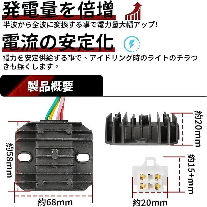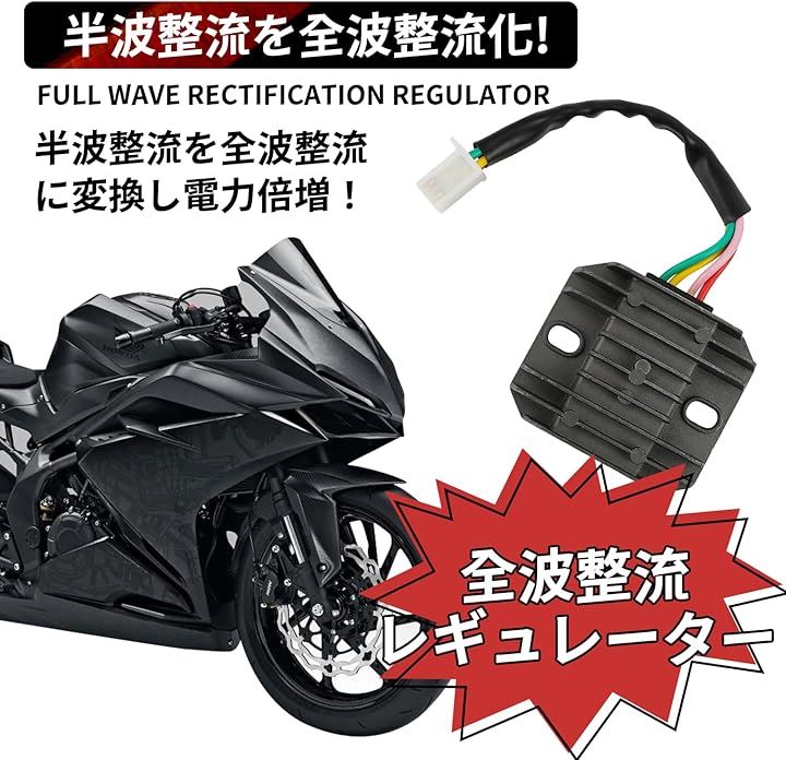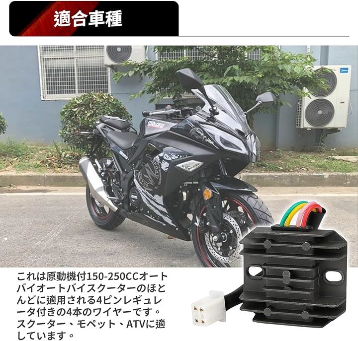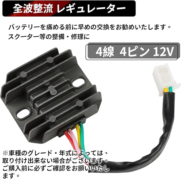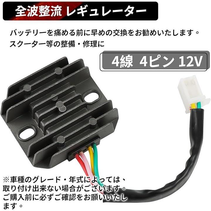 互換品 全波整流レギュレーター 整流器 過充電防止 交換パーツ 4線 4ピン 12V 150-250CC GY6スクーター モペット ATV オートバイ用 取り付け簡単