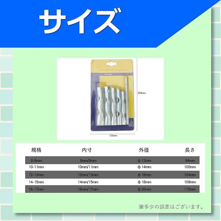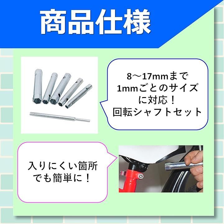 スパークプラグレンチ 6本セット 14mm・16mm対応 棒状ハンドルタイプ バイク 車用 プラグ交換 工具セット DIY 整備用 メンテナンス工具