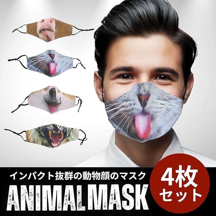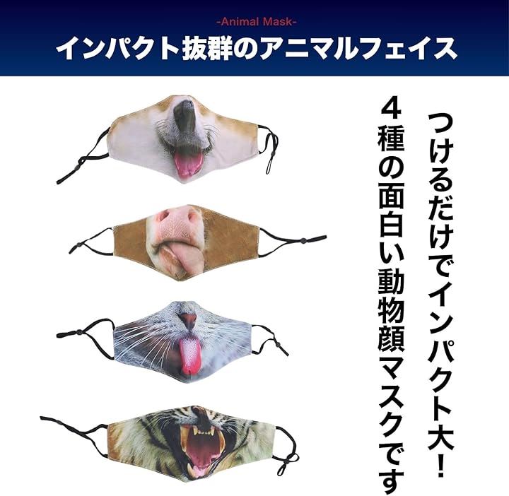 アニマルマスク 4枚セット 変装マスク 猫 犬 虎 牛 仮装 仮面 ハロウィン パーティー