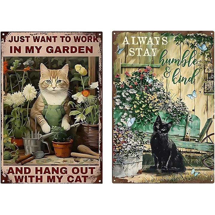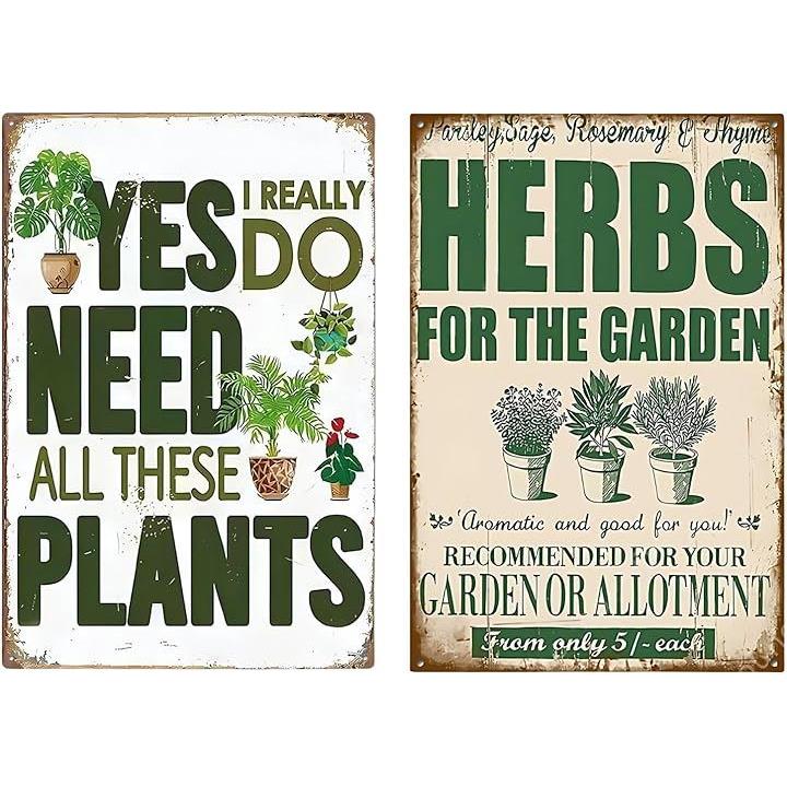 ブリキ看板 ガーデニング雑貨 ガーデン雑貨 2枚セット ヴィンテージ看板 穴あき 壁飾り