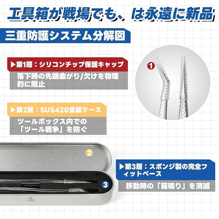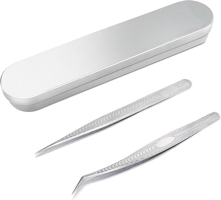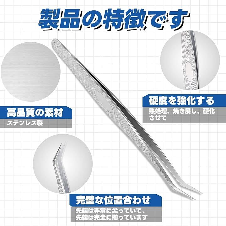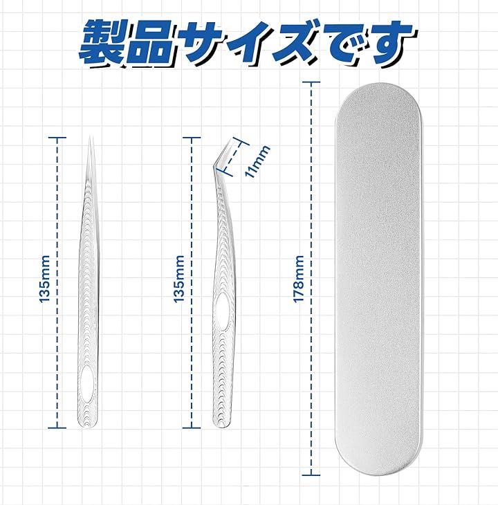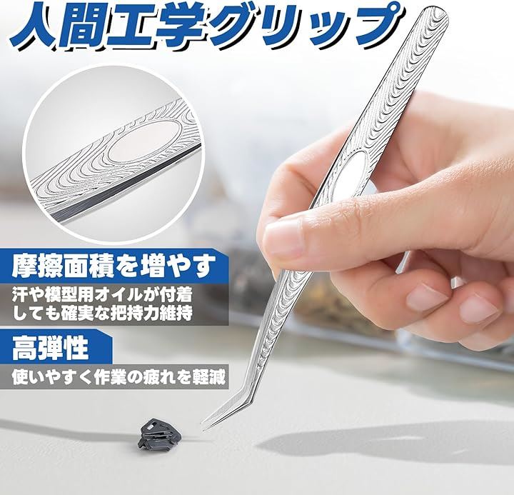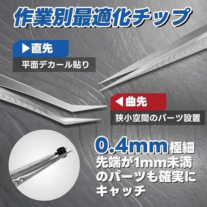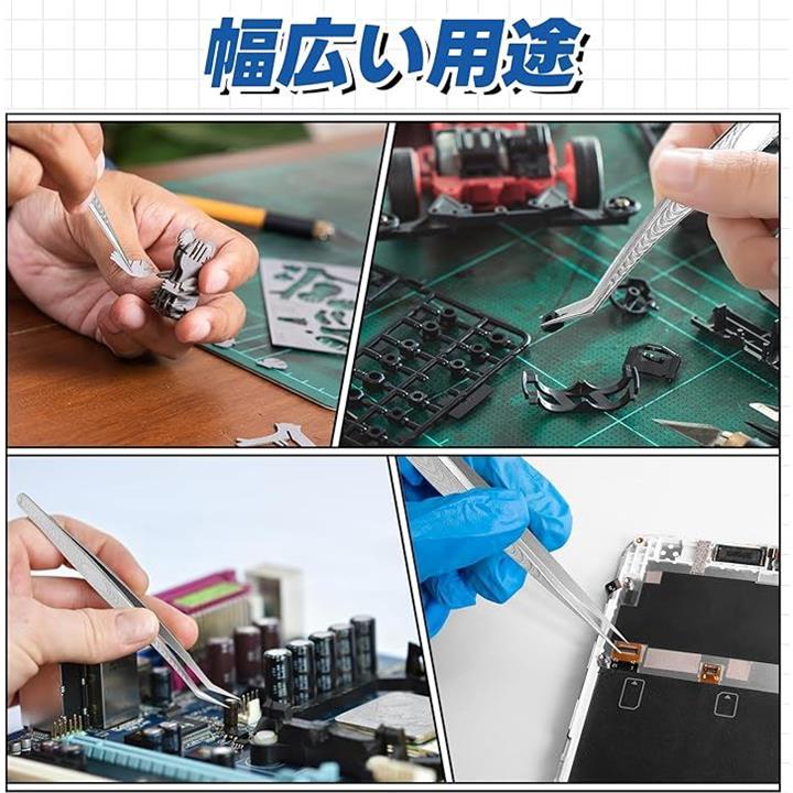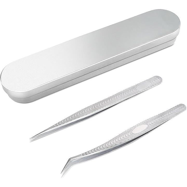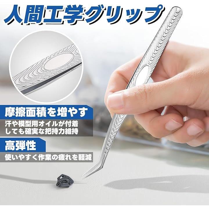 極ツマミ 精密 ステンレス ピンセット ストレート 先曲がり 模型製作 手芸 ツイーザー 2本セット ケース付