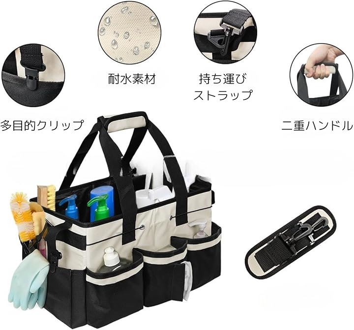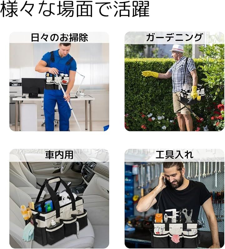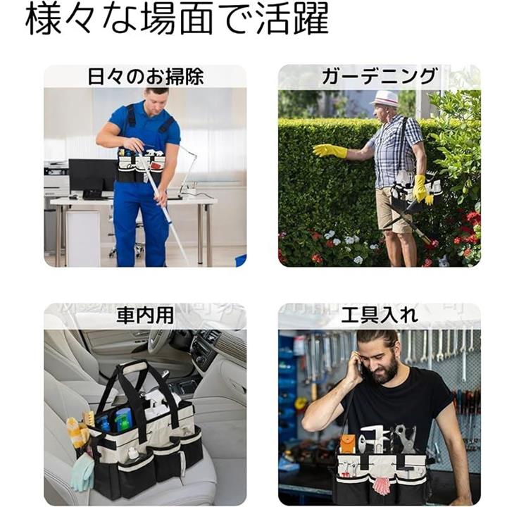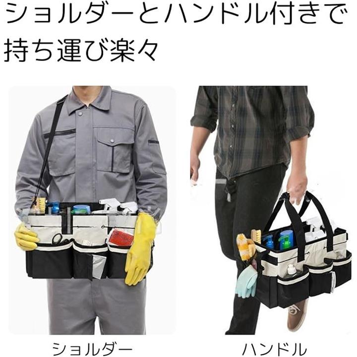 クリーニング 作業 バッグ 掃除 清掃 工具 洗車 道具 収納 ツールバッグ キャディ 小型 鞄 清掃ツール 多機能ポケット 機能性 作業員 主婦