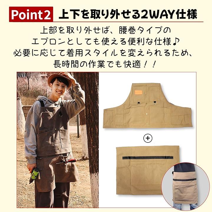 作業エプロン アウトドア 作業着 耐熱 フリーサイズ ユニセックス DIY 前掛け キャンプ 調理 ガーデニング BBQ レジャー ワーク