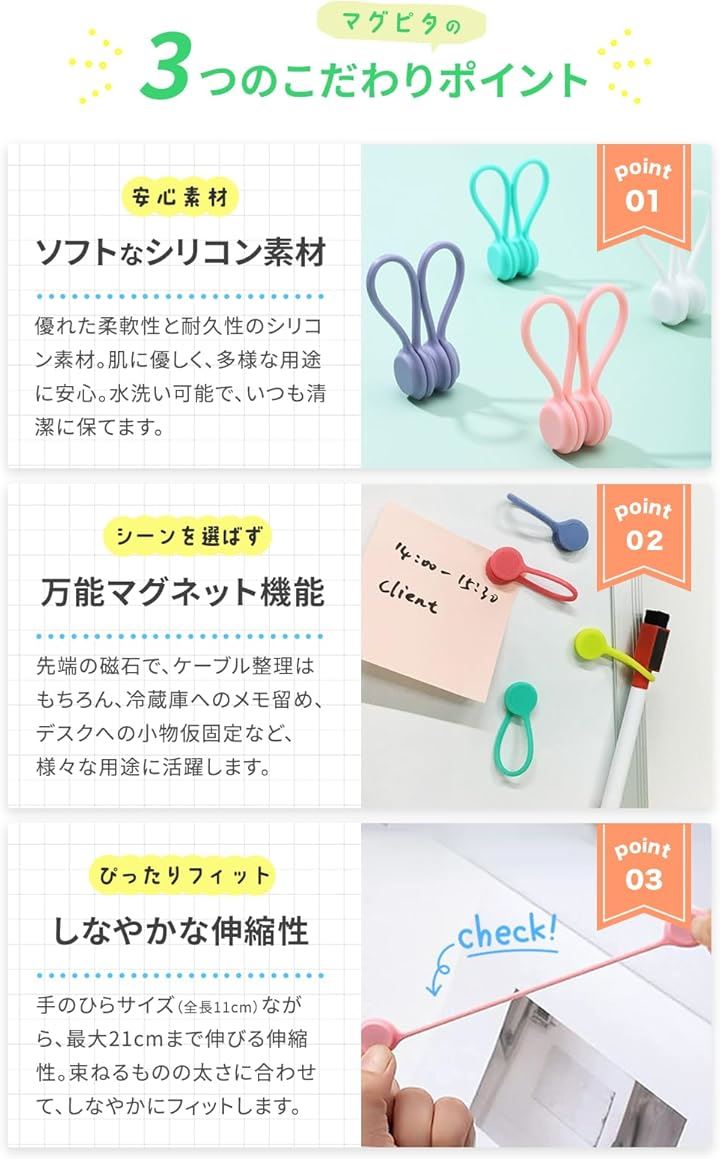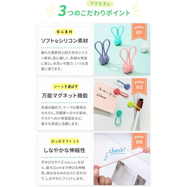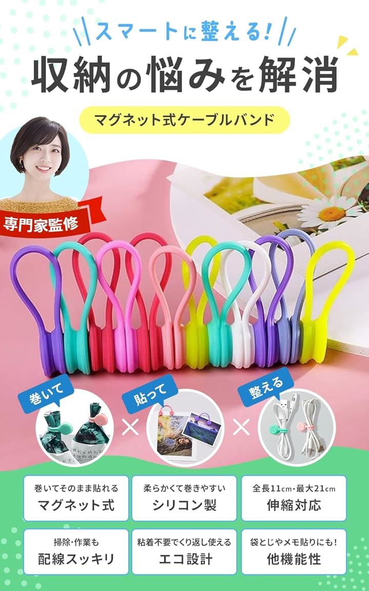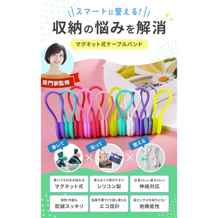 ケーブルバンド ケーブルクリップ マグネットクリップ 整理収納アドバイザー監修&マグネット内蔵で貼るだけ配線整理 ケーブルタイ コードクリップ