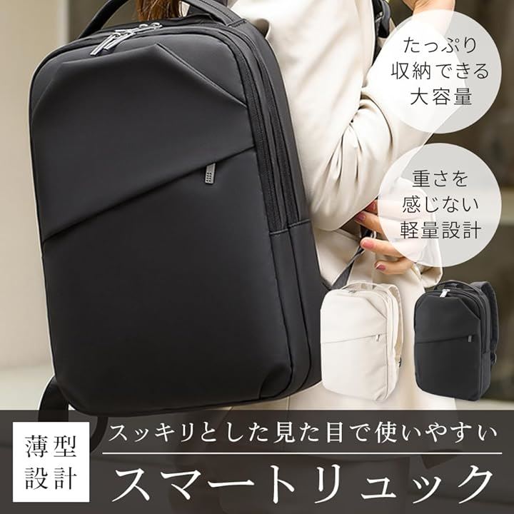 スマートリュック ビジネス・通勤 薄型 撥水 軽量 A4 14インチPC収納可能