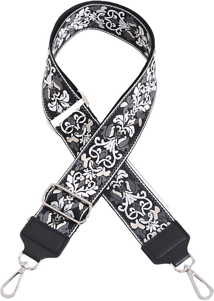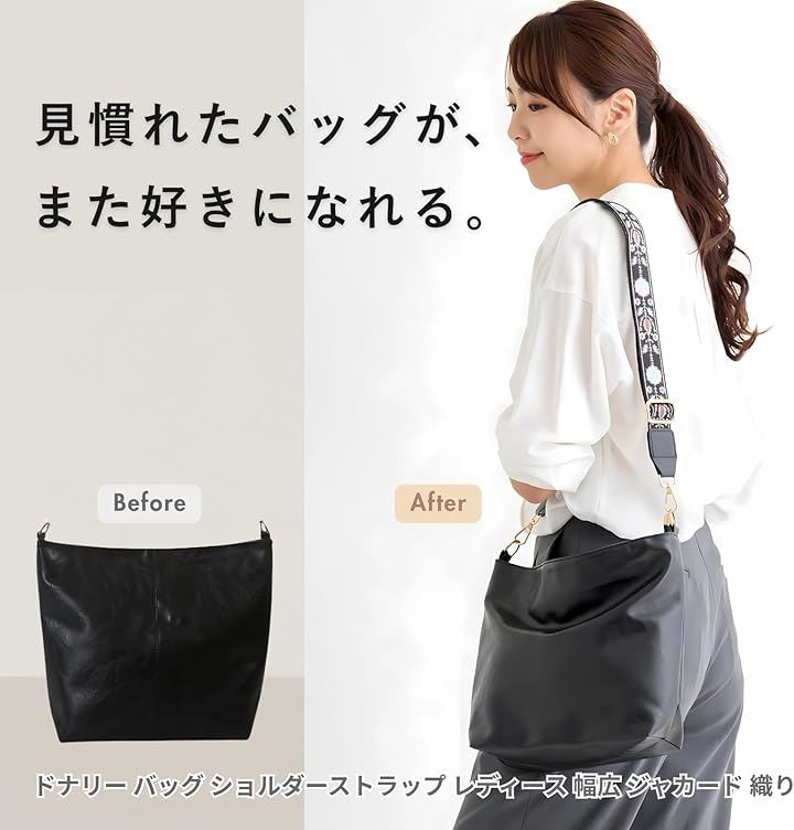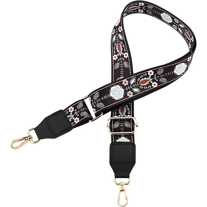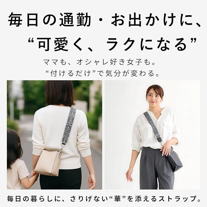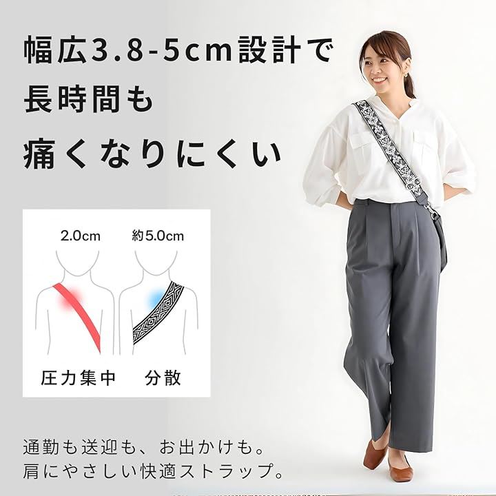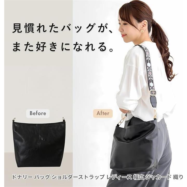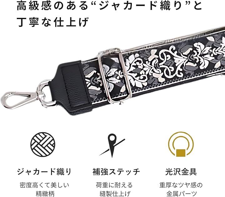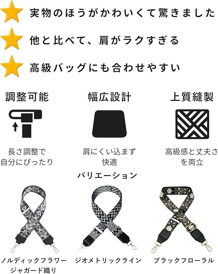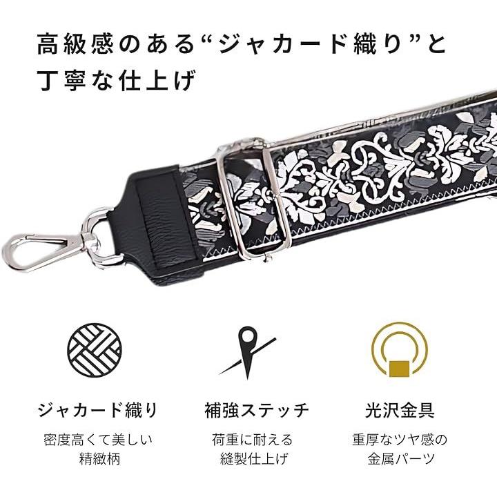 バッグ ショルダーストラップ レディース 幅広 太め 黒 ジャカード 刺繍 ベルト 肩に優しい 後付け 可愛い おしゃれ 斜めがけ 長さ調整可能