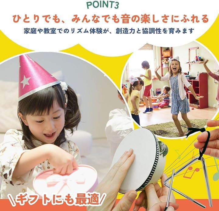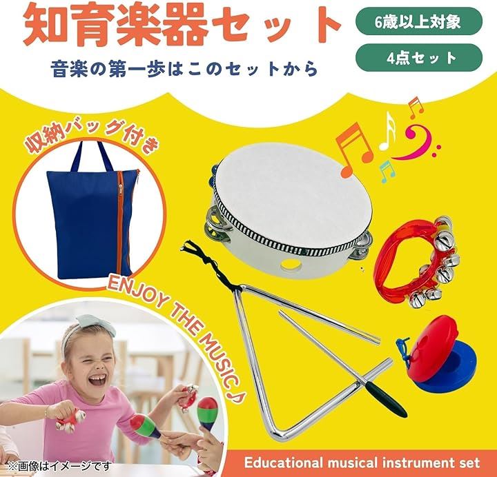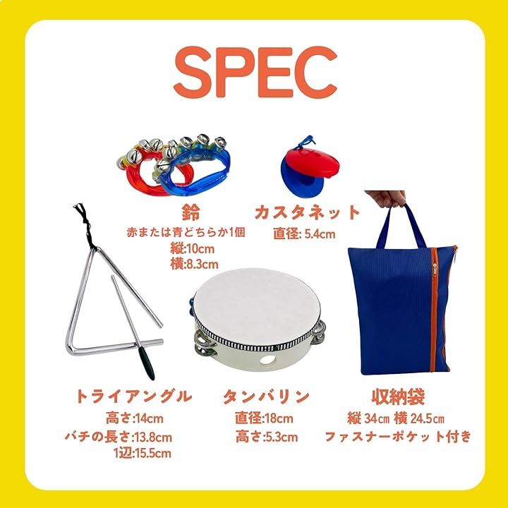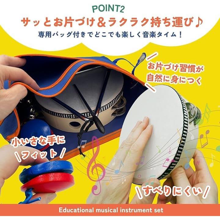 楽器セット タンバリン 鈴 トライアングル カスタネット 子供 小学生 打楽器 収納袋付き
