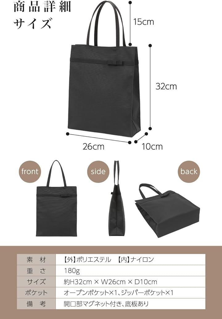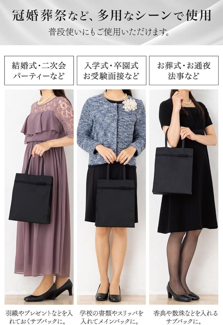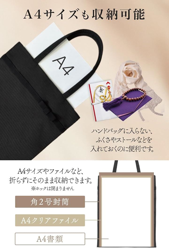 ミウォルナ サブバッグ フォーマル トートバッグ A4 冠婚葬祭 結婚式 葬式 葬儀用 喪服バッグ 慶弔両用 レディース リボン