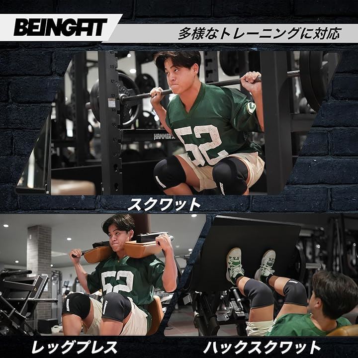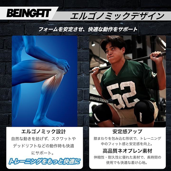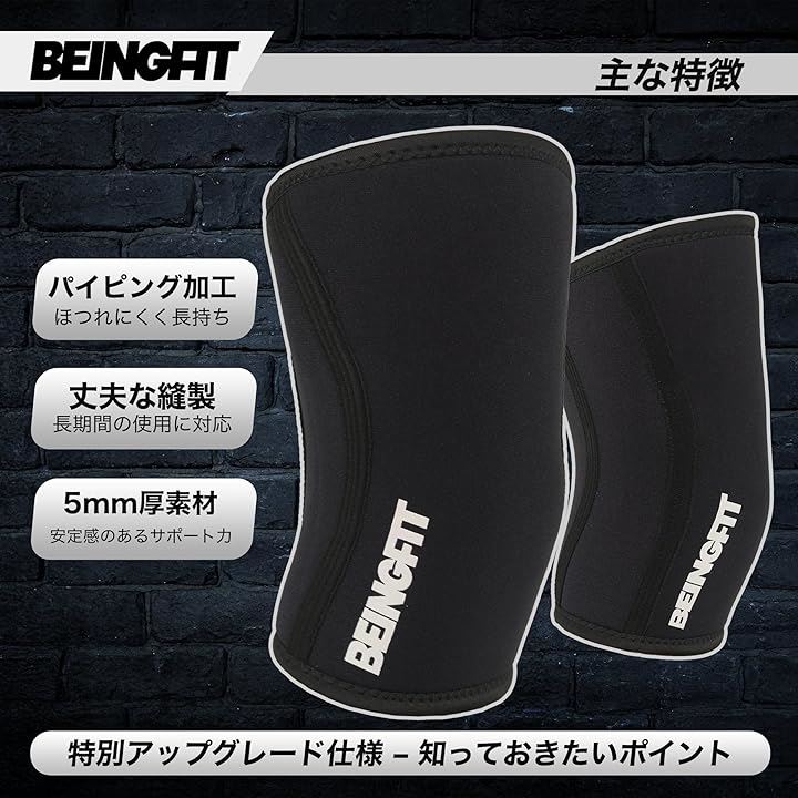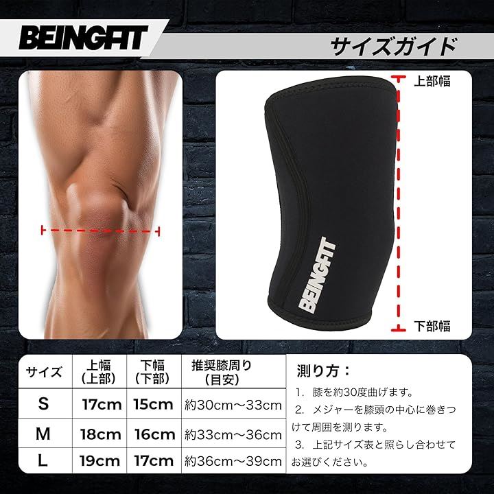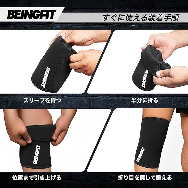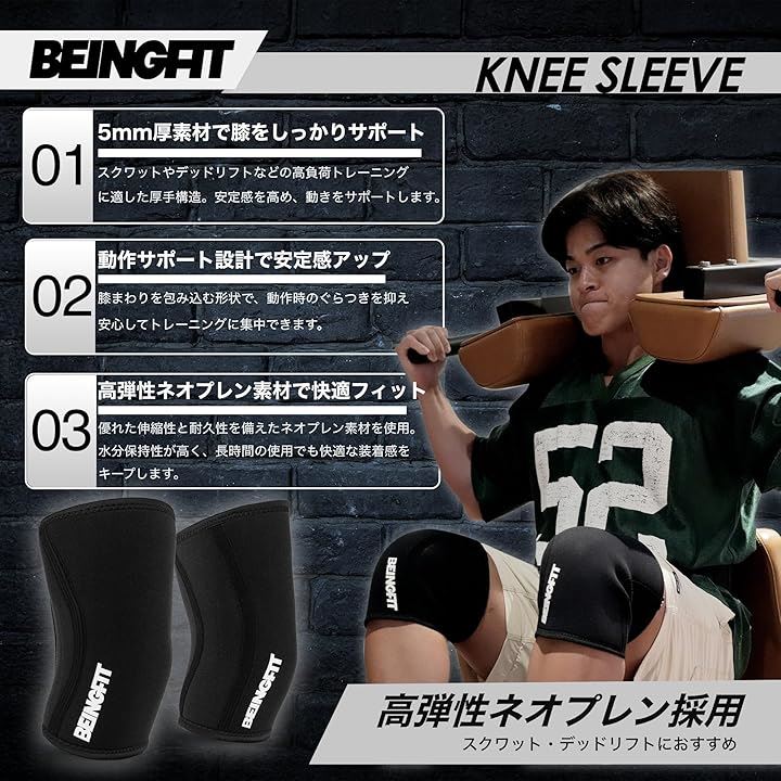 Beingfit ニースリーブ 筋トレ 膝サポーター 着脱簡単 | 初心者~上級者対応 S/M/L スクワット トレーニング 5mm ウェイトトレーニング ニーサポーター 男女兼用